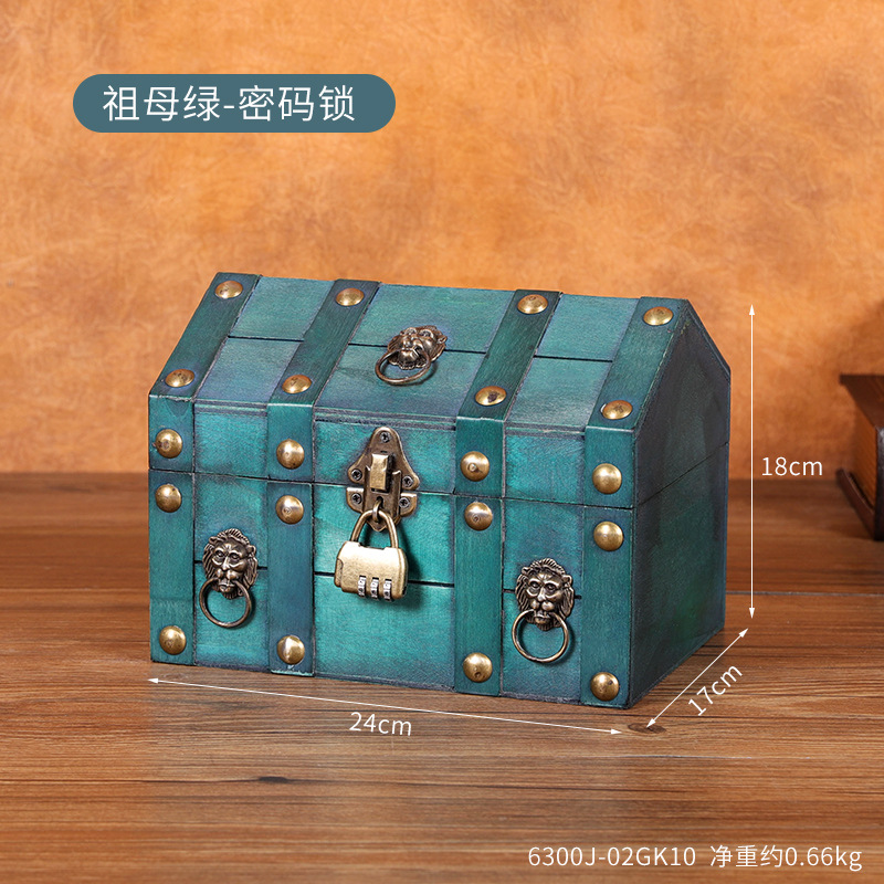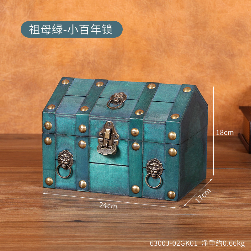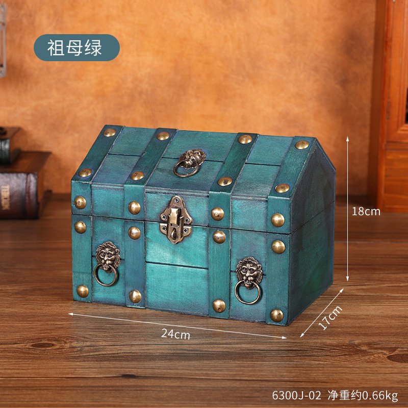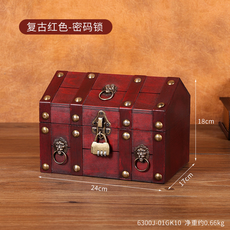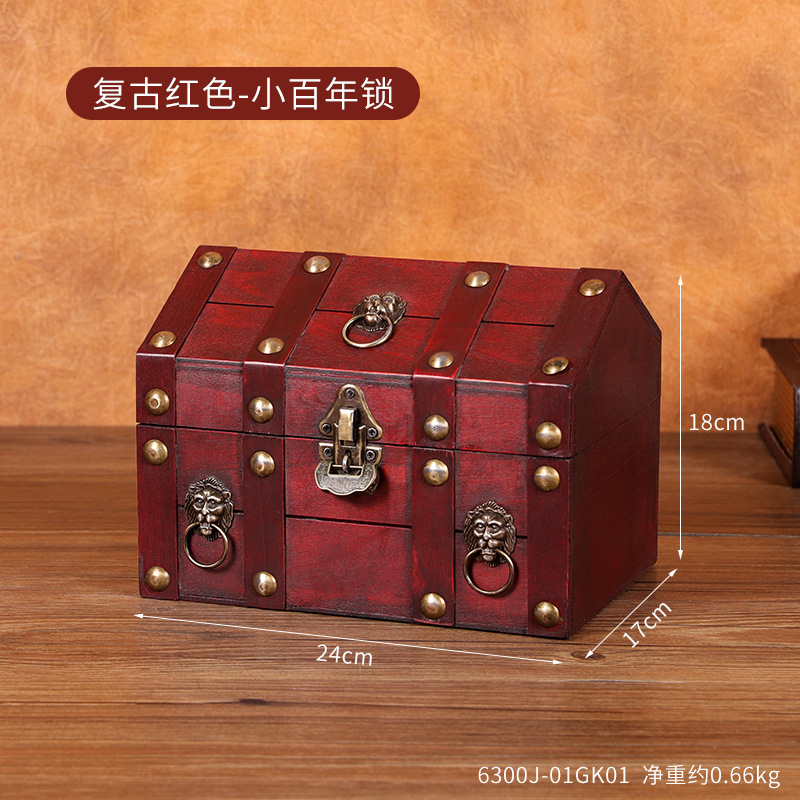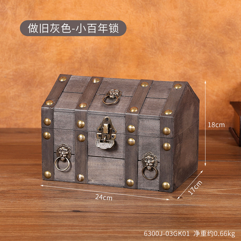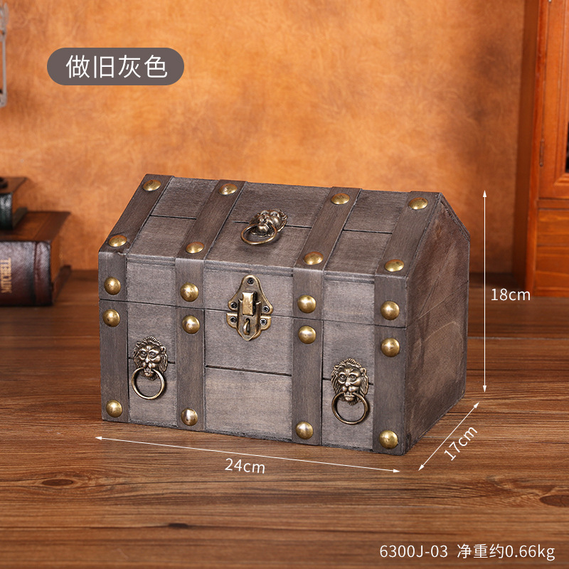 跨境新款复古收纳盒桌面首饰盒带锁木盒子创意藏宝箱收藏盒道具箱