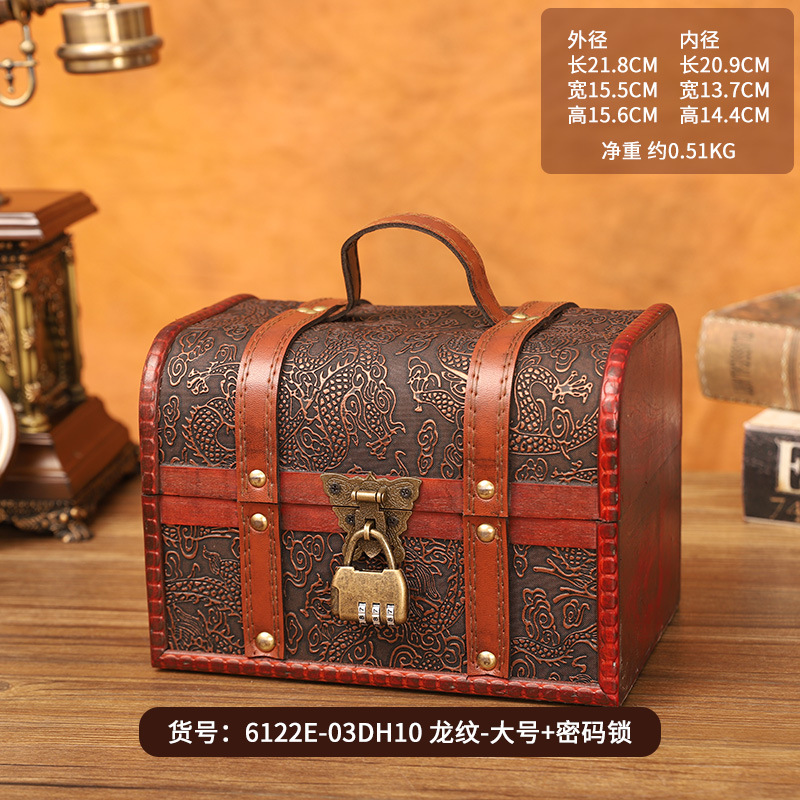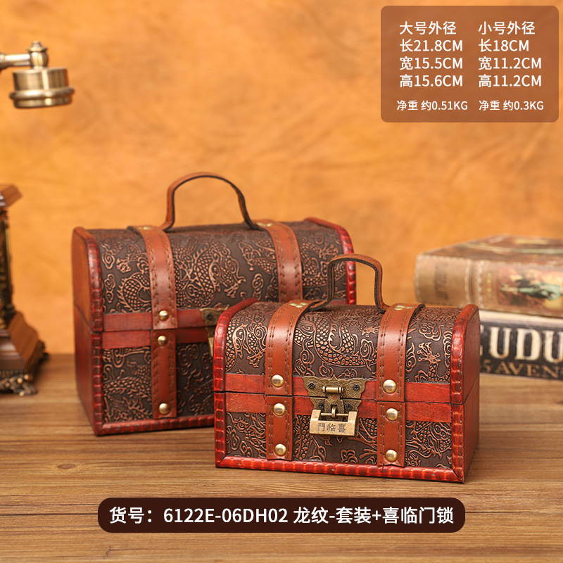 外贸新款中式龙纹两件套收纳盒储物盒首饰盒木盒子密码箱厂销批发