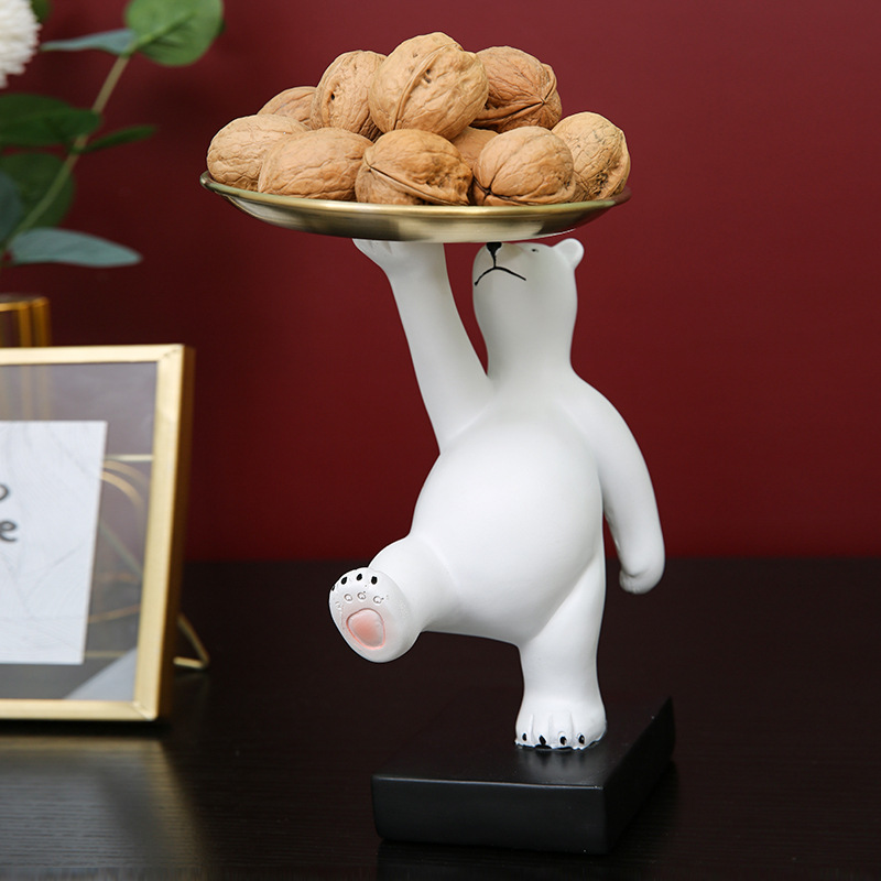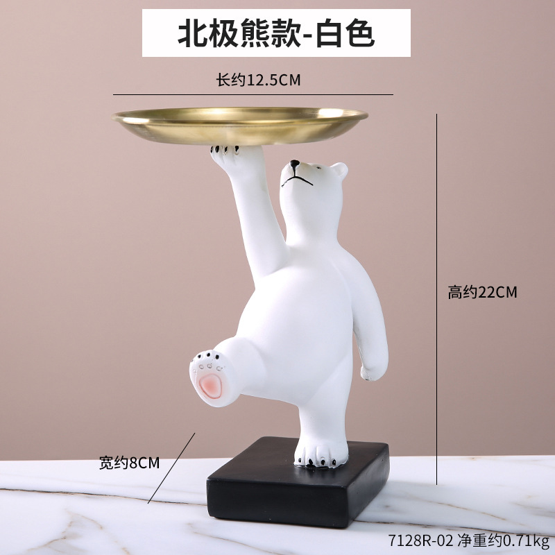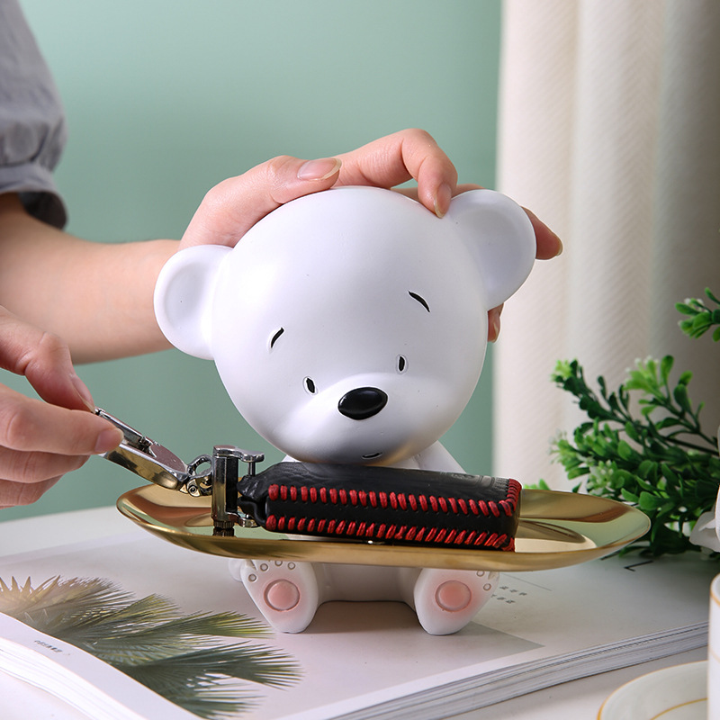 北欧小熊托盘摆件玄关钥匙收纳盒家居客厅茶几果盘首饰托盘装饰品