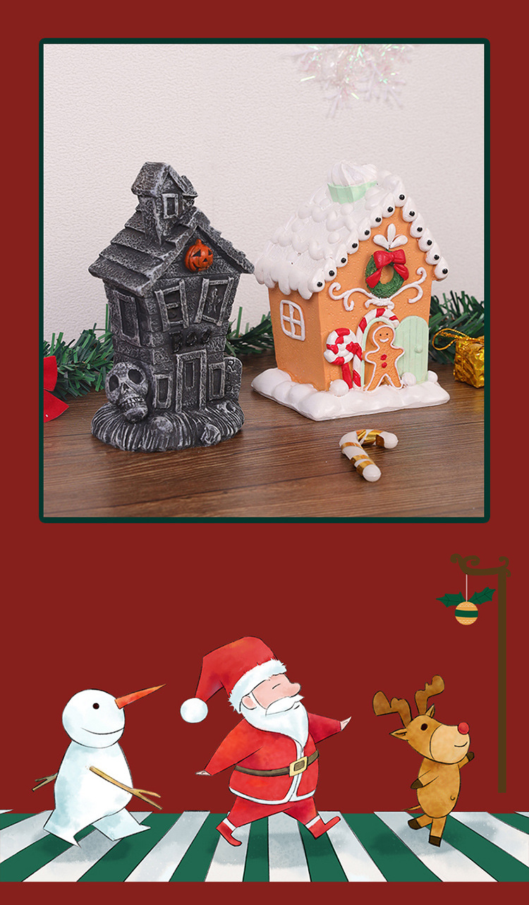 跨境圣诞小房子摆件圣诞节庆微景观姜饼屋姜饼人装饰圣诞氛围摆设