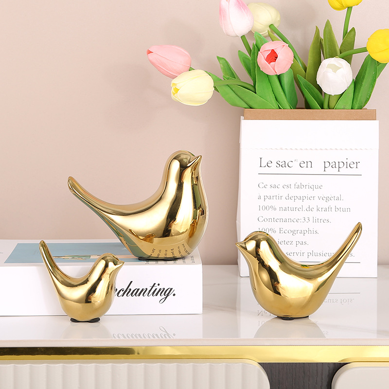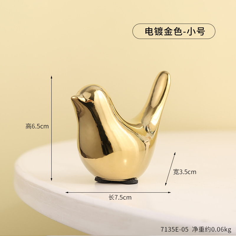 现代简约金色电镀小鸟摆件玄关客厅电视桌面装饰工艺品迷你小摆件