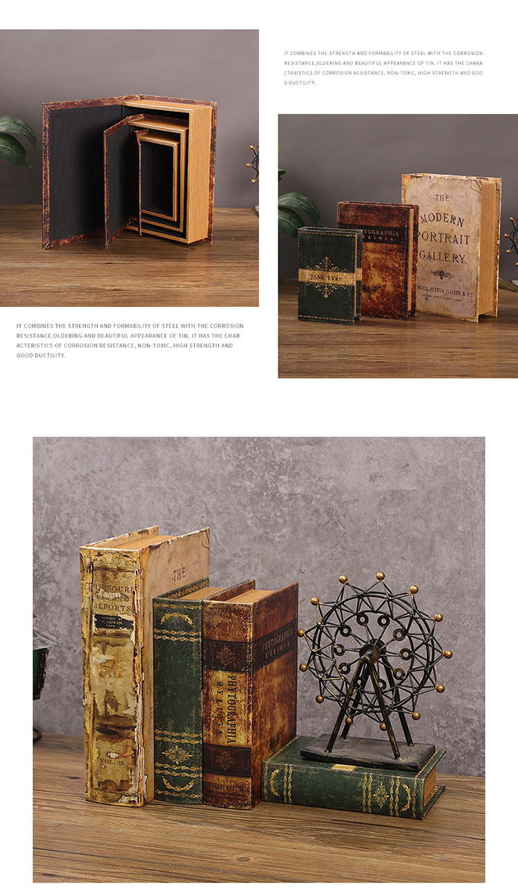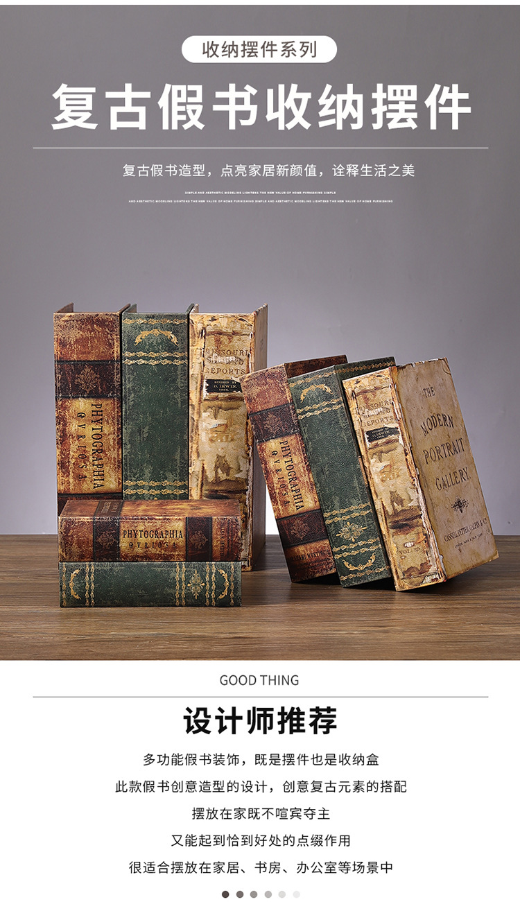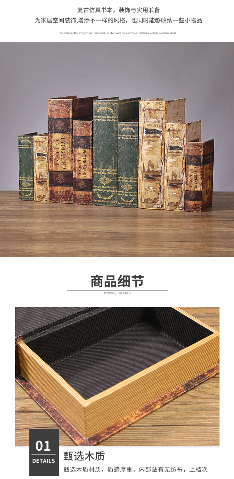 复古美式仿真书道具客厅书房卧室样板间模型书本收纳盒装饰品摆件