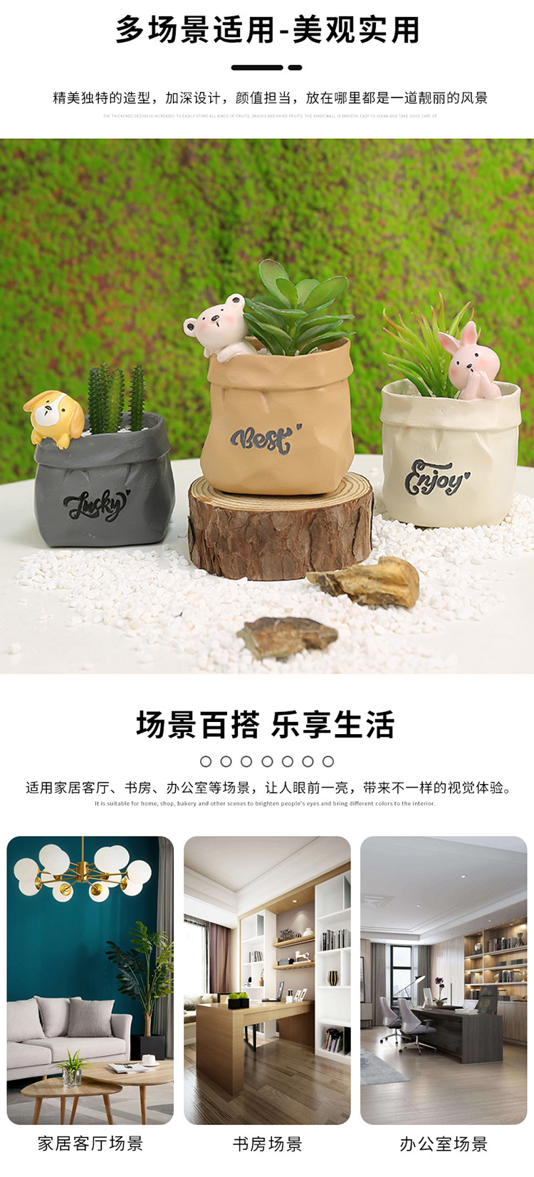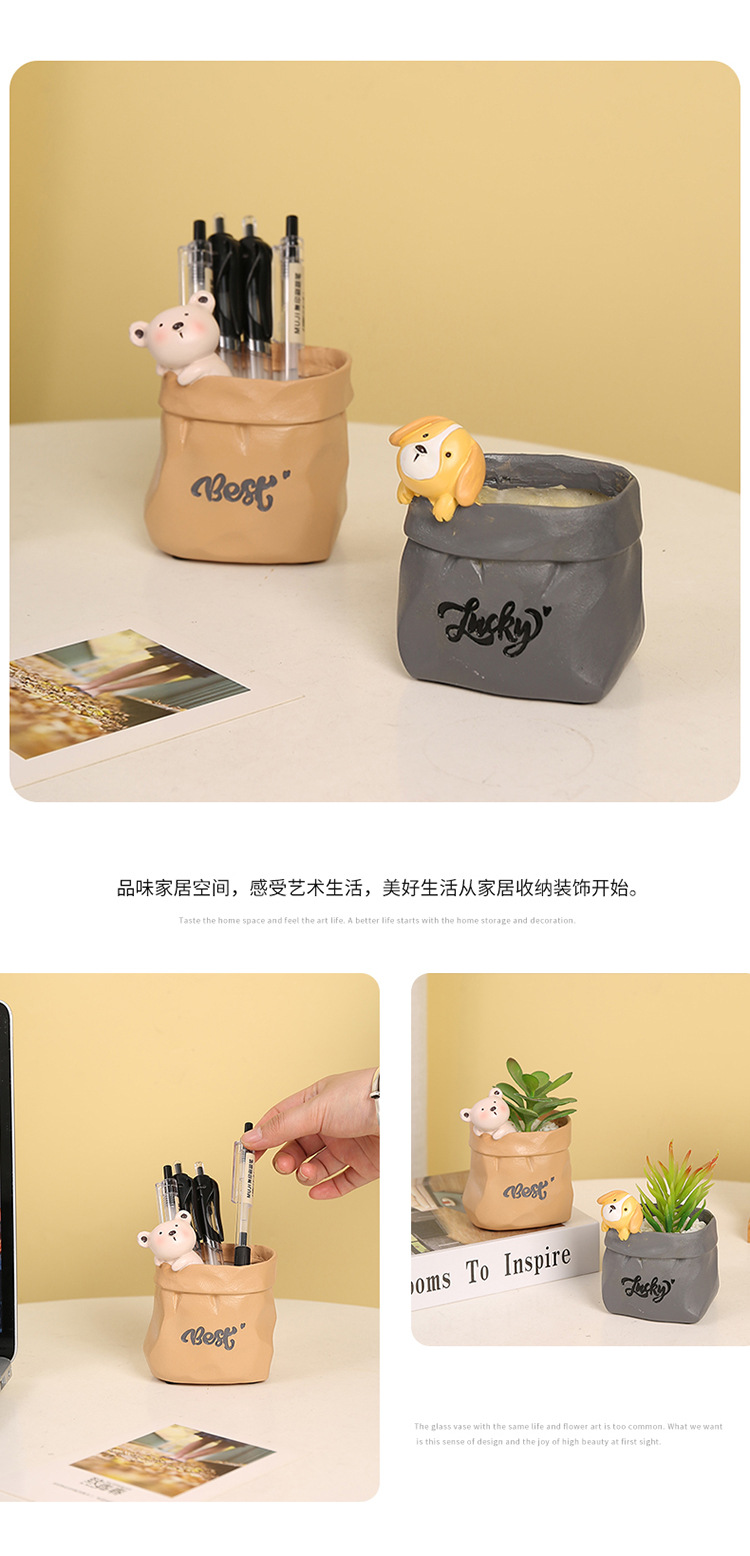 卡通动物陶瓷仿纸袋笔筒杂物收纳家居多肉盆栽空盆花盆装饰工艺品
