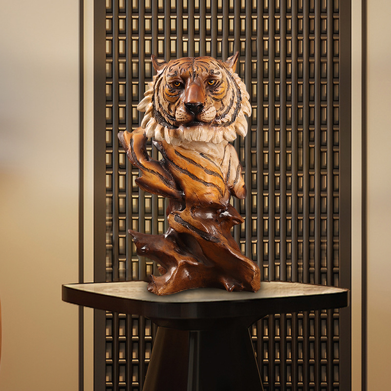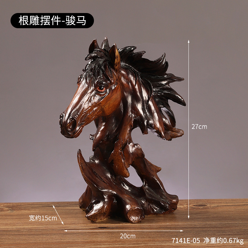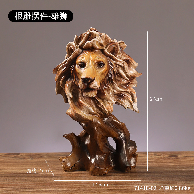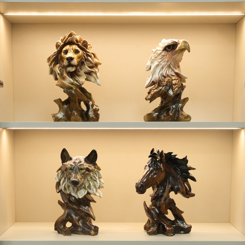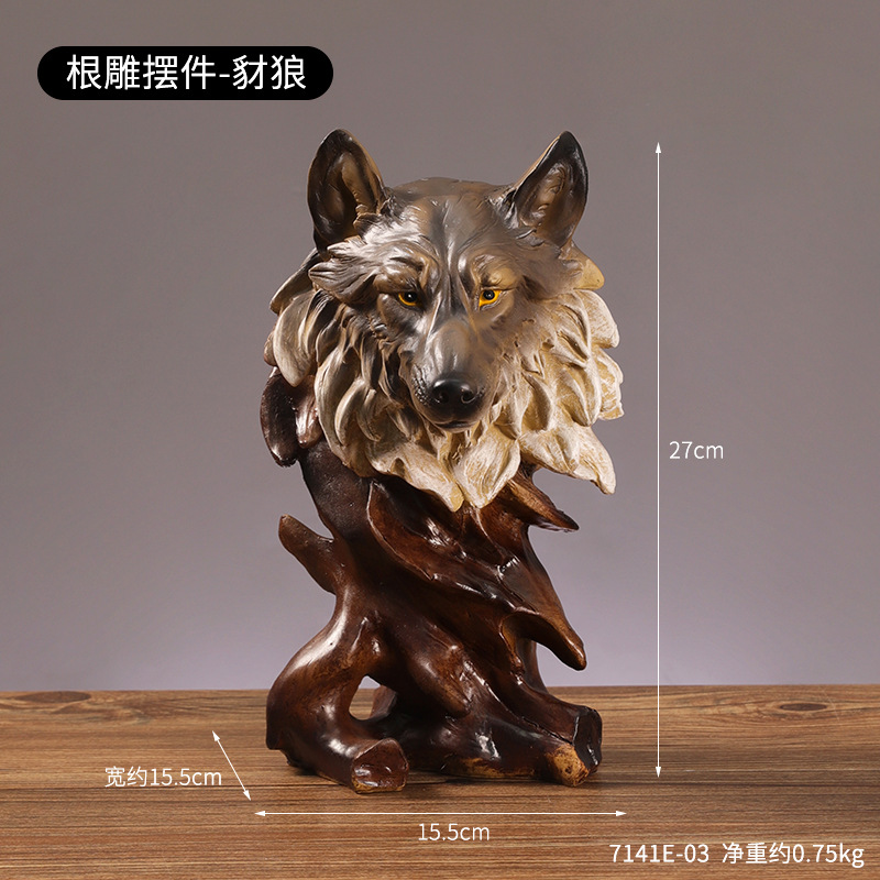 跨境仿根雕立体动物头像摆设办公室书柜软装书桌面树脂工艺品摆件