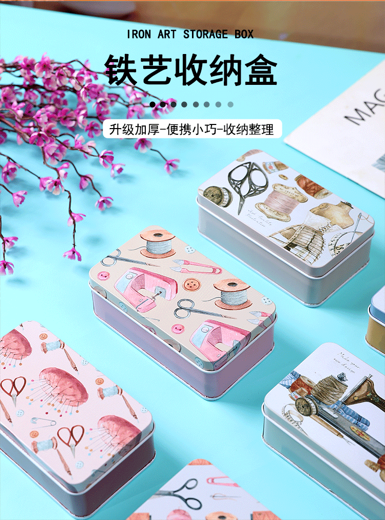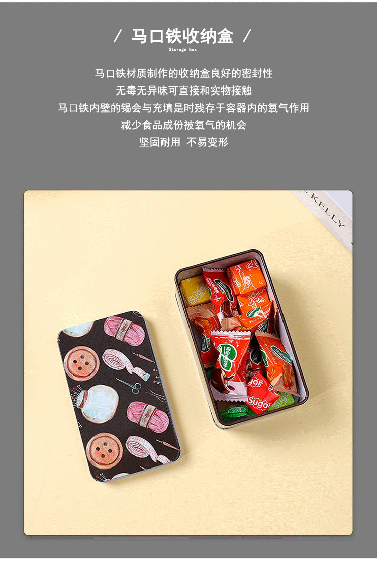 跨境桌面长方形储物收纳盒发卡小纽扣零钱马口铁盒糖果礼物包装盒