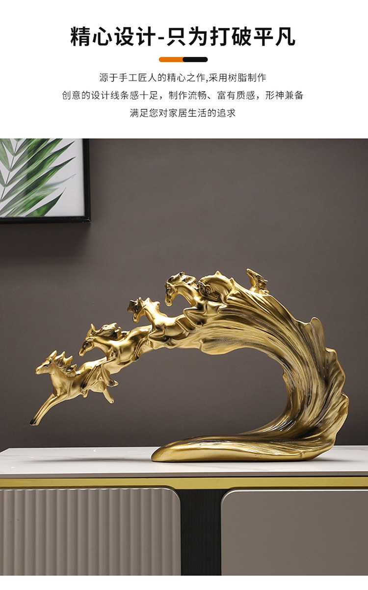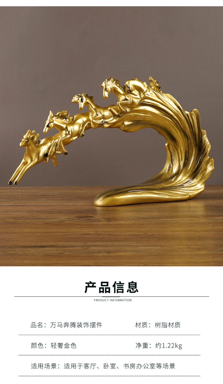 现代疾风骏马树脂摆件样板房橱窗酒柜书架老板办公桌面装饰摆设