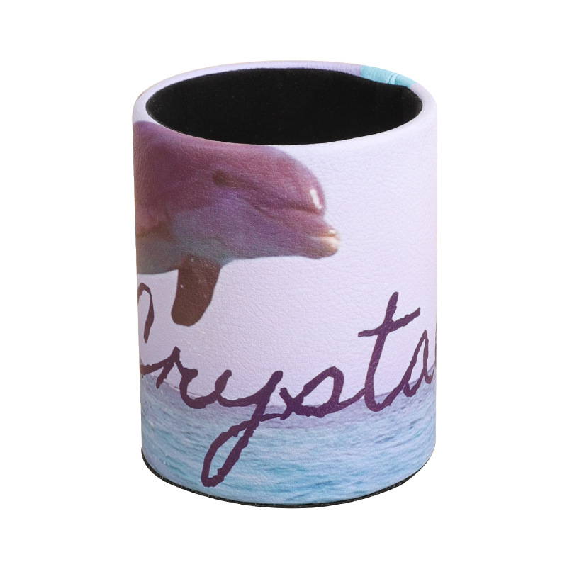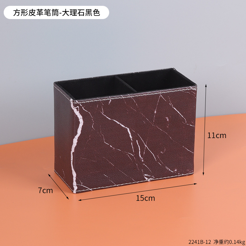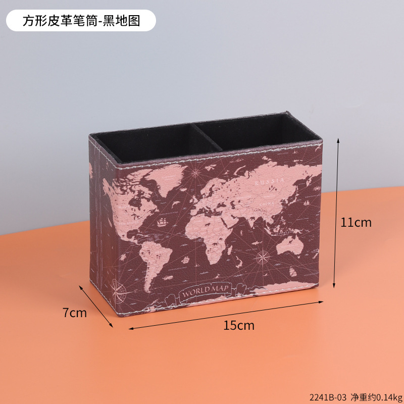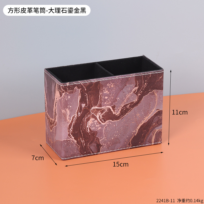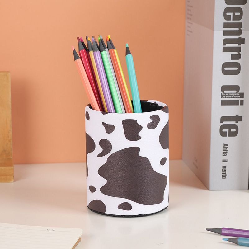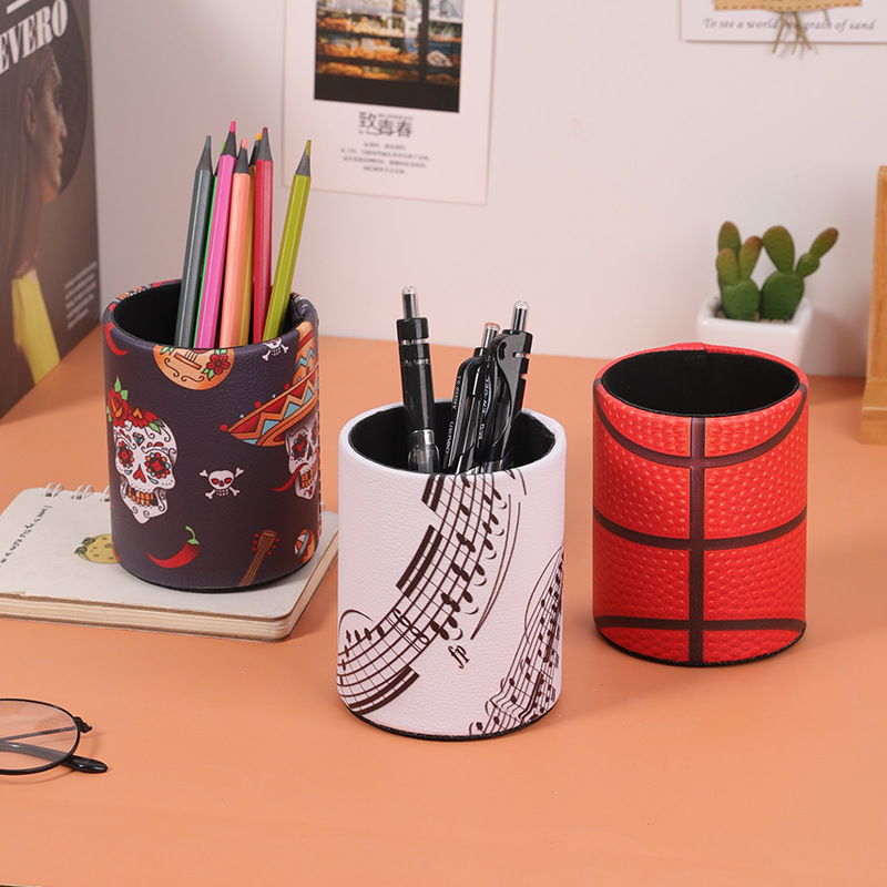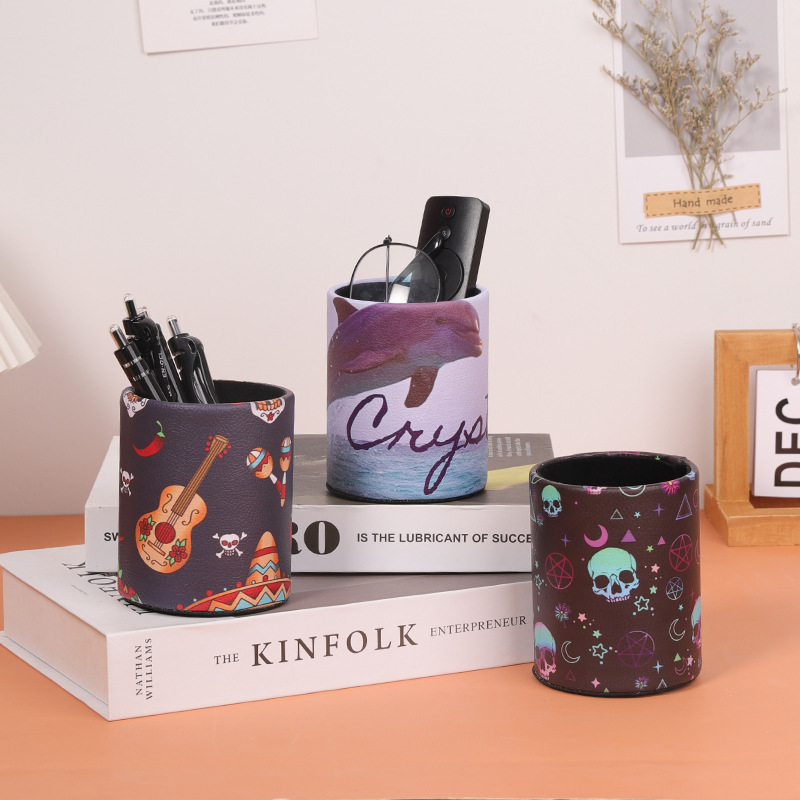 复古PU皮革圆形笔筒家居办公室书房书桌面笔筒文具杂物收纳笔桶