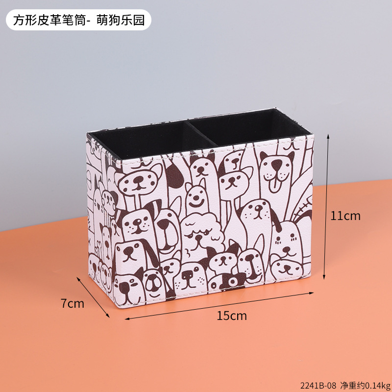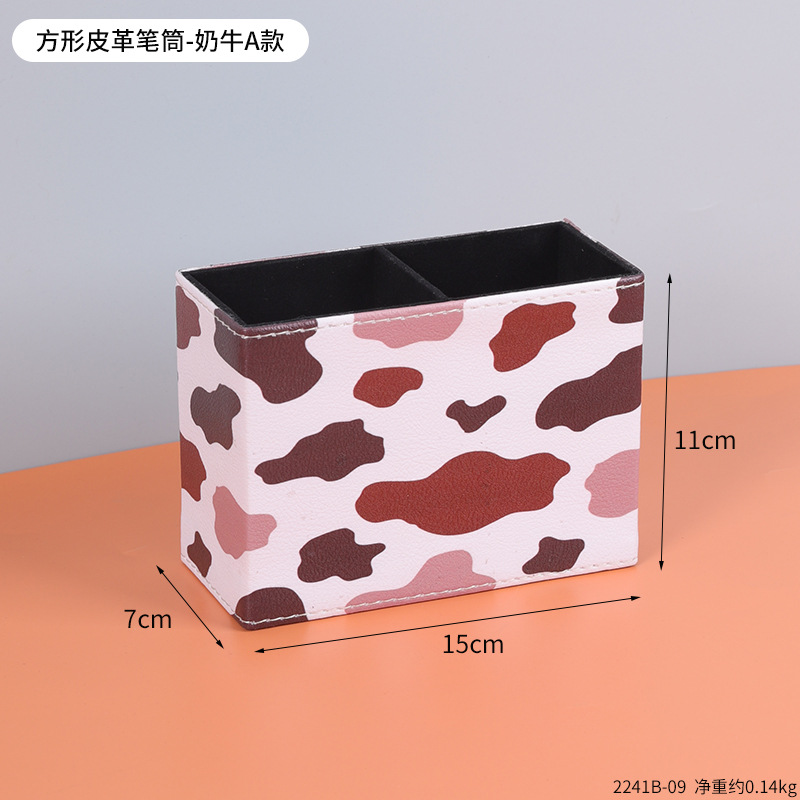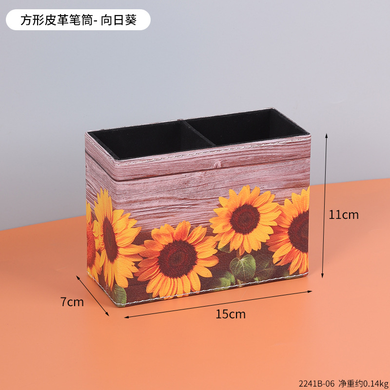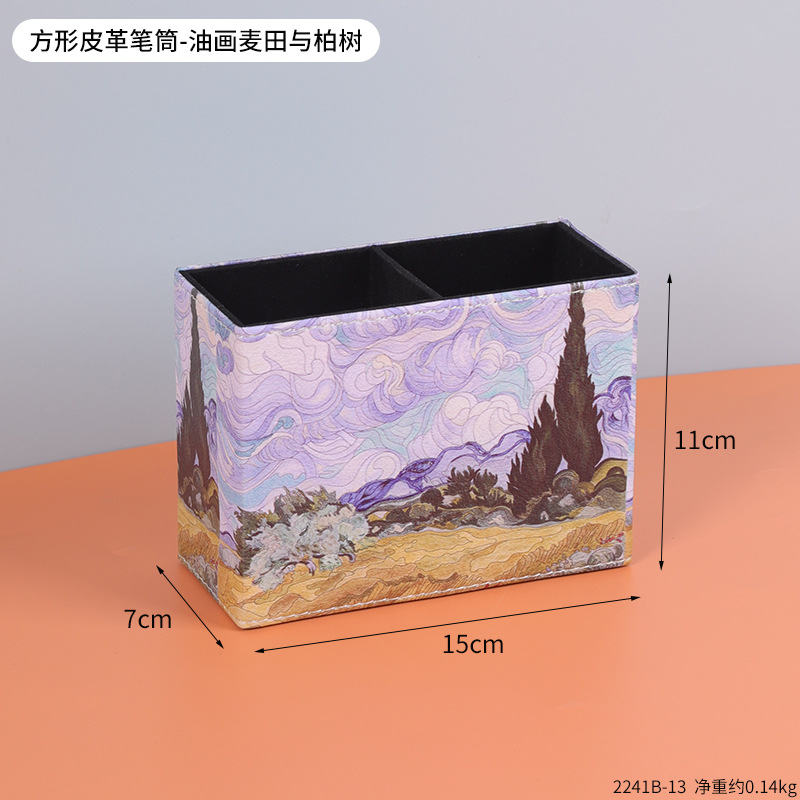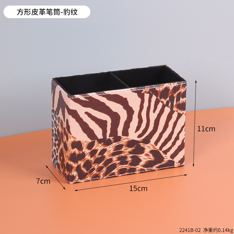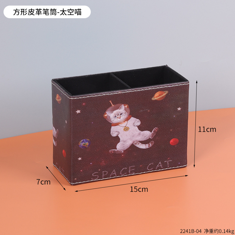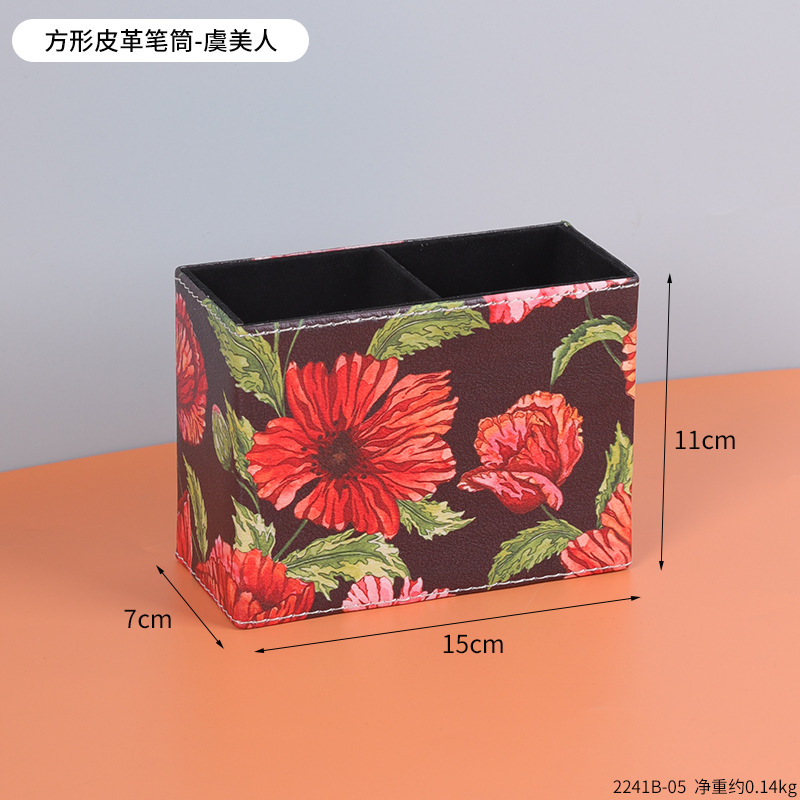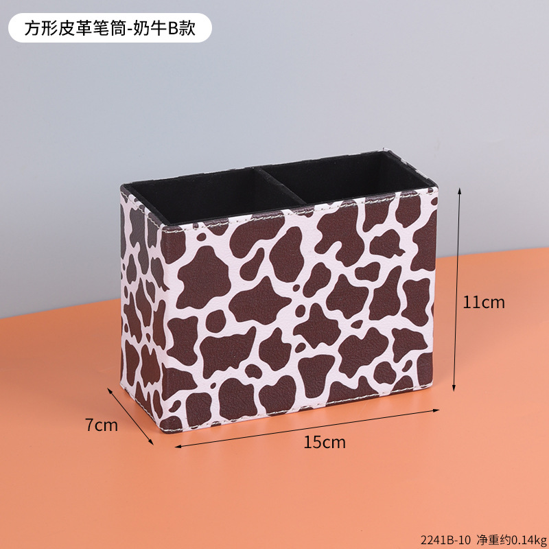 复古PU皮革圆形笔筒家居办公室书房书桌面笔筒文具杂物收纳笔桶
