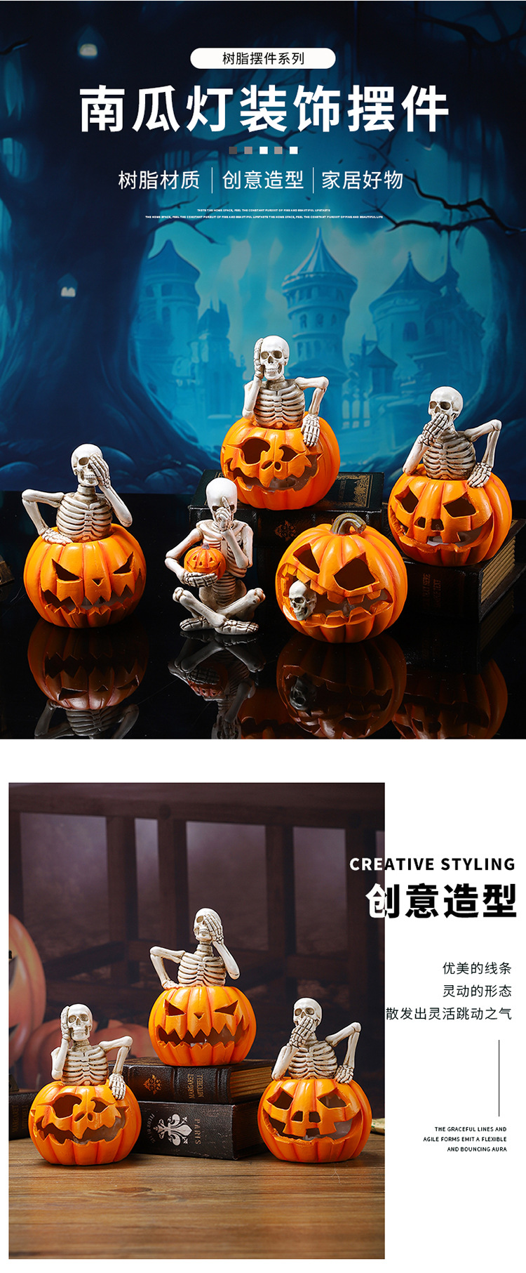 万圣节南瓜骷髅人物摆件LED彩色发光南瓜摆件节日纪念礼品