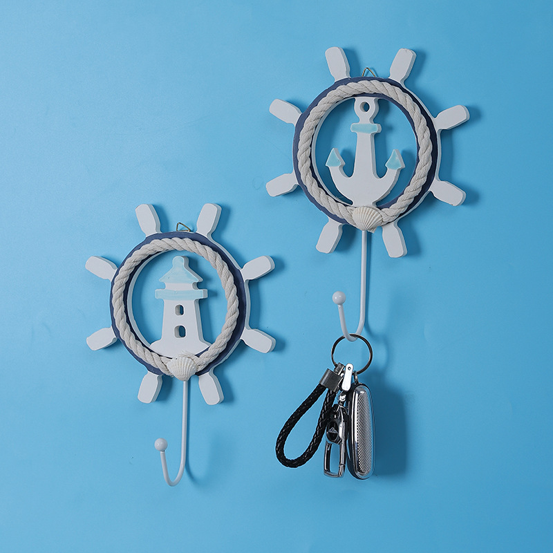 海洋风船舵墙面装饰挂钩地中海风格民宿酒店壁挂衣服收纳铁艺挂钩