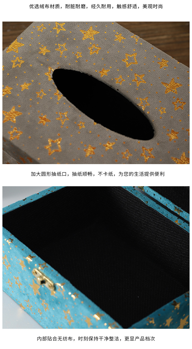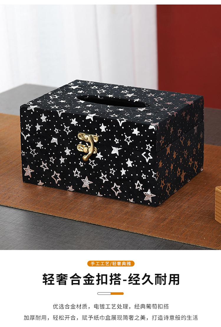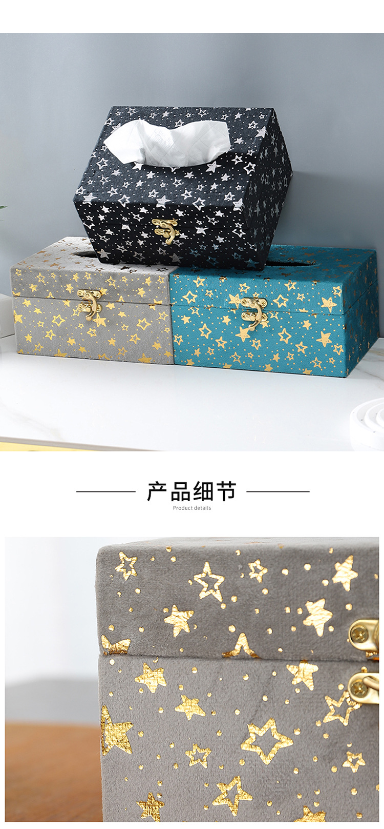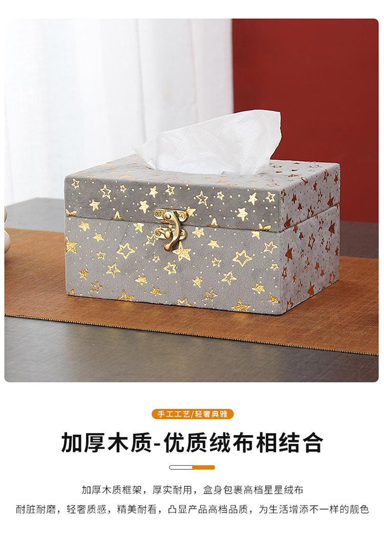 现代轻奢烫金星星绒毛纸巾收纳盒家用餐厅餐桌客厅茶几桌面抽纸盒