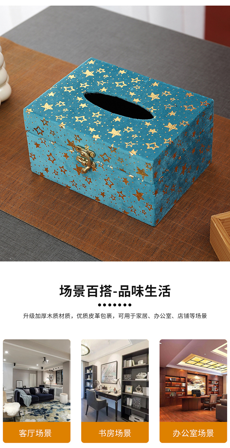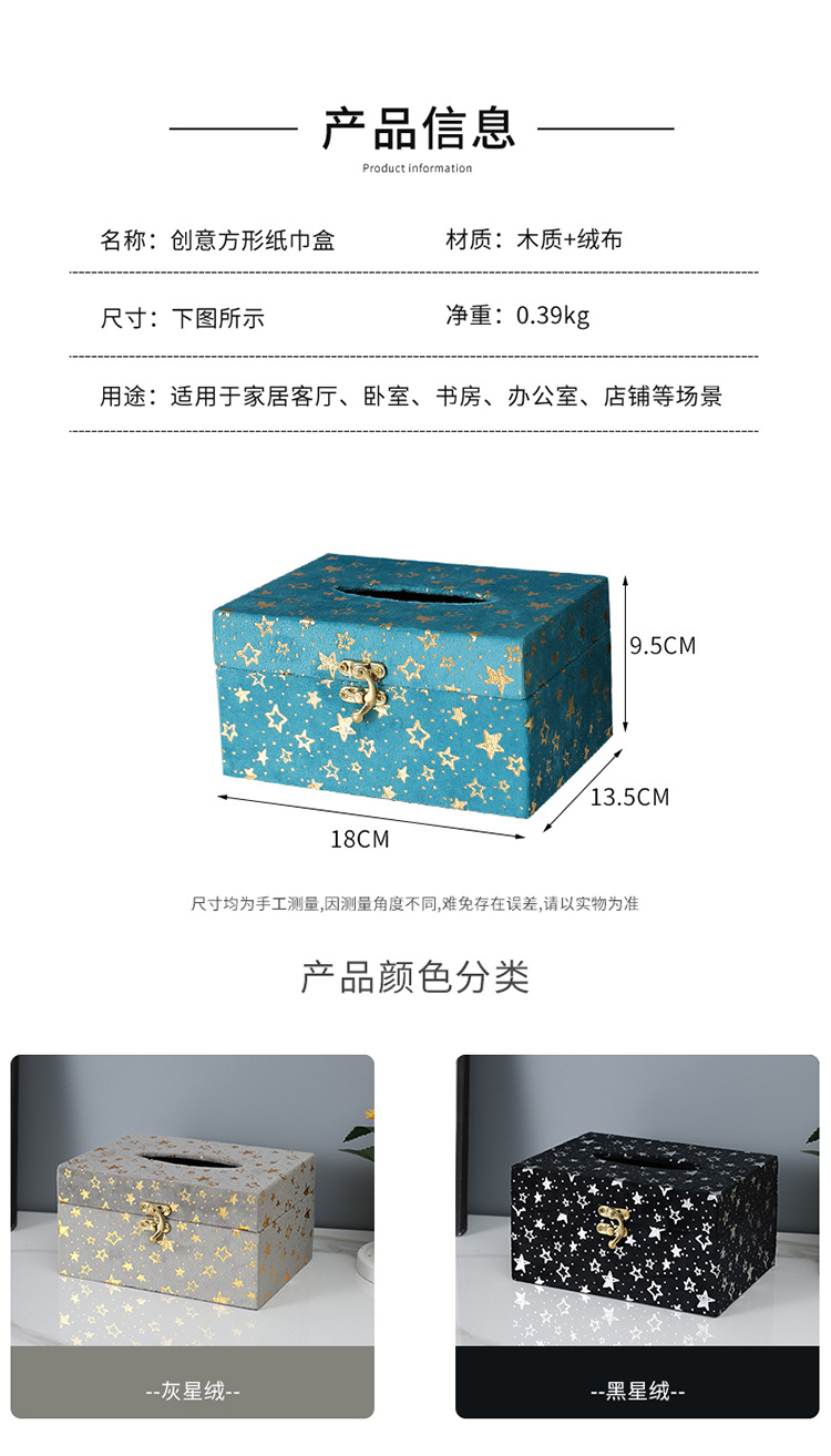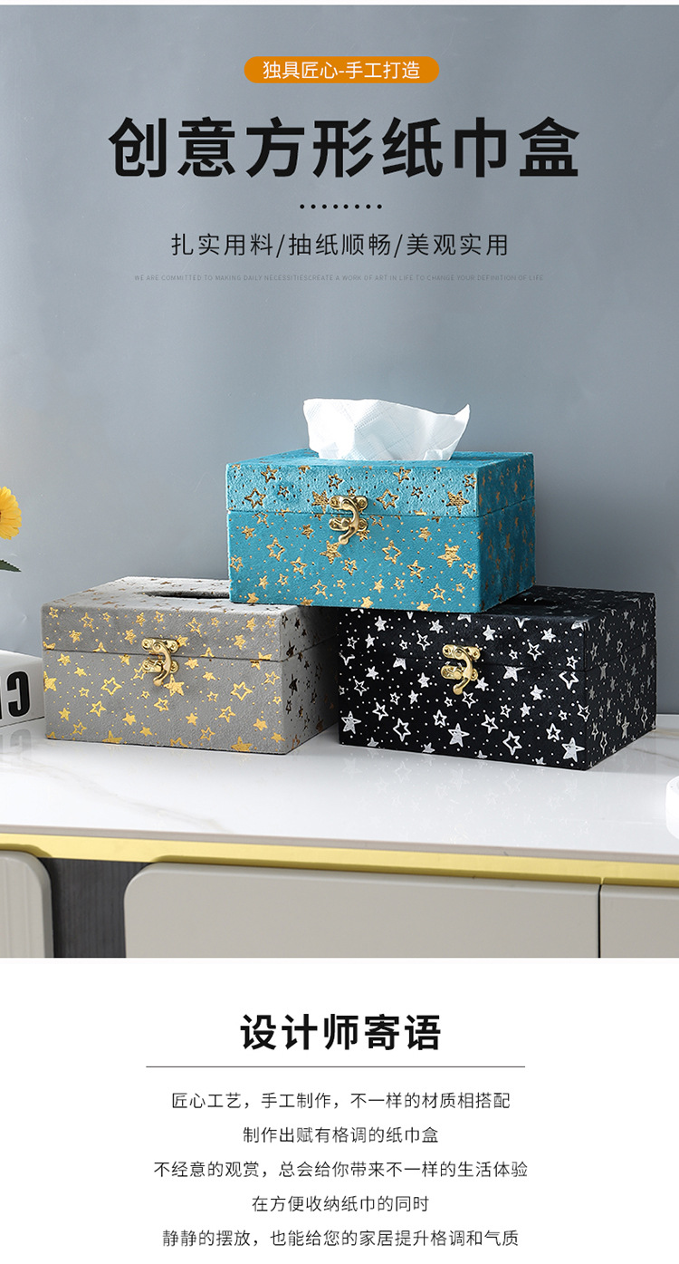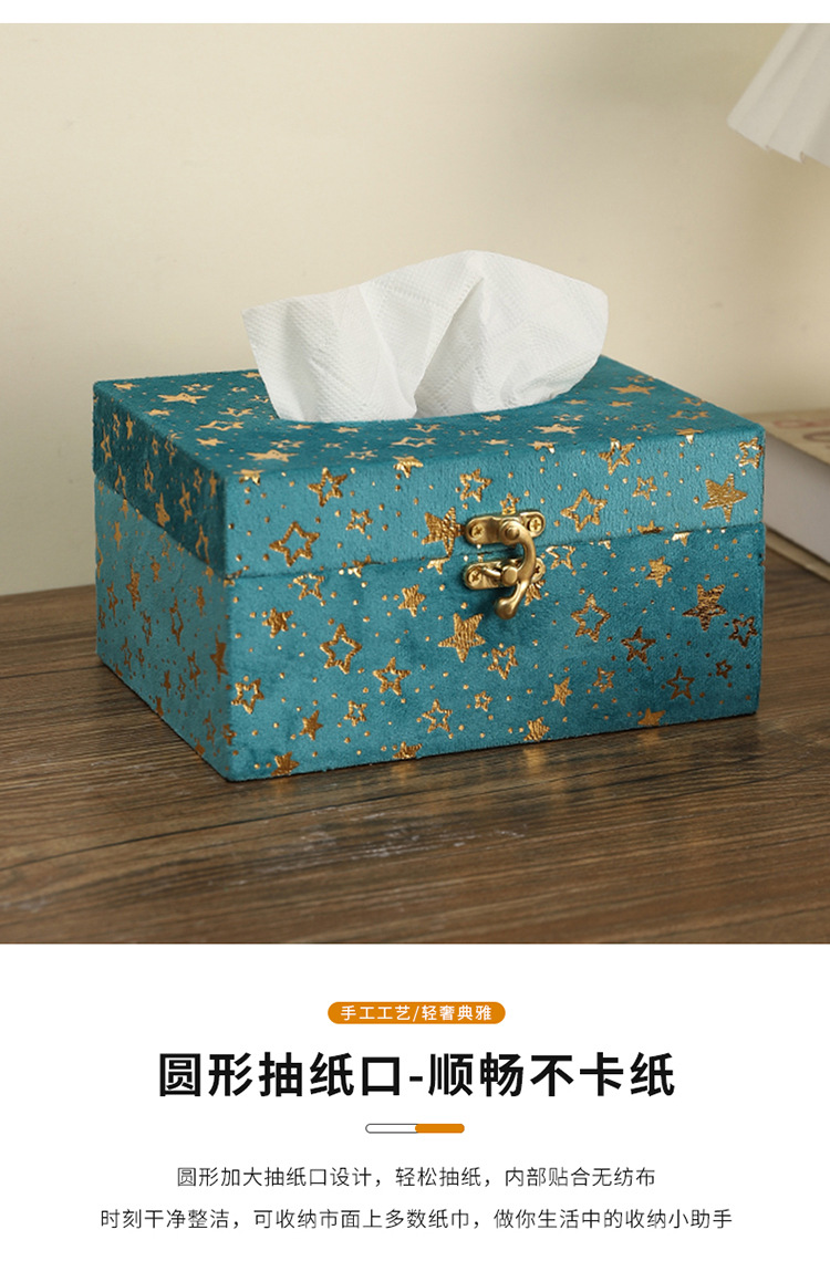 现代轻奢烫金星星绒毛纸巾收纳盒家用餐厅餐桌客厅茶几桌面抽纸盒