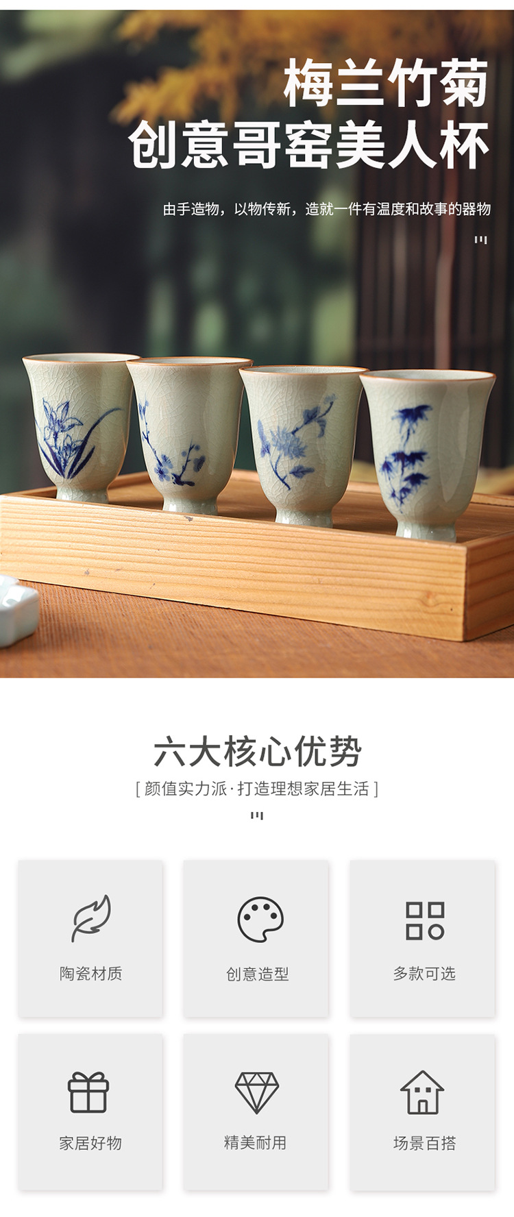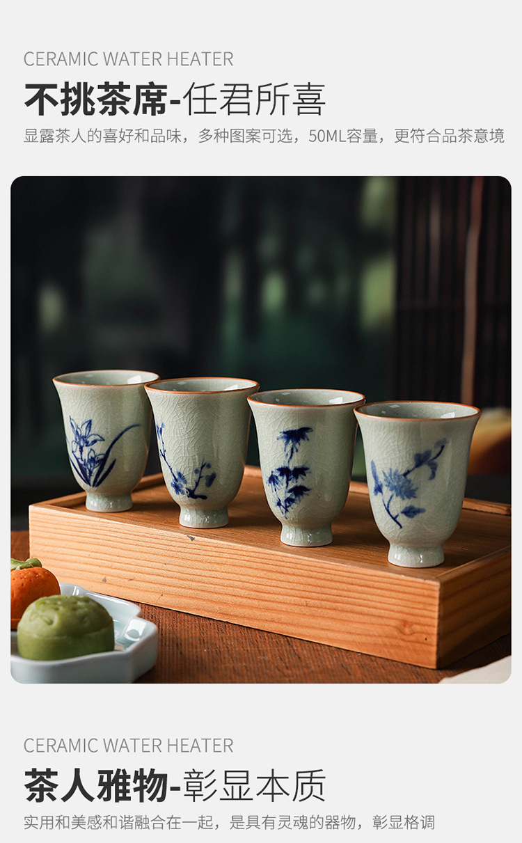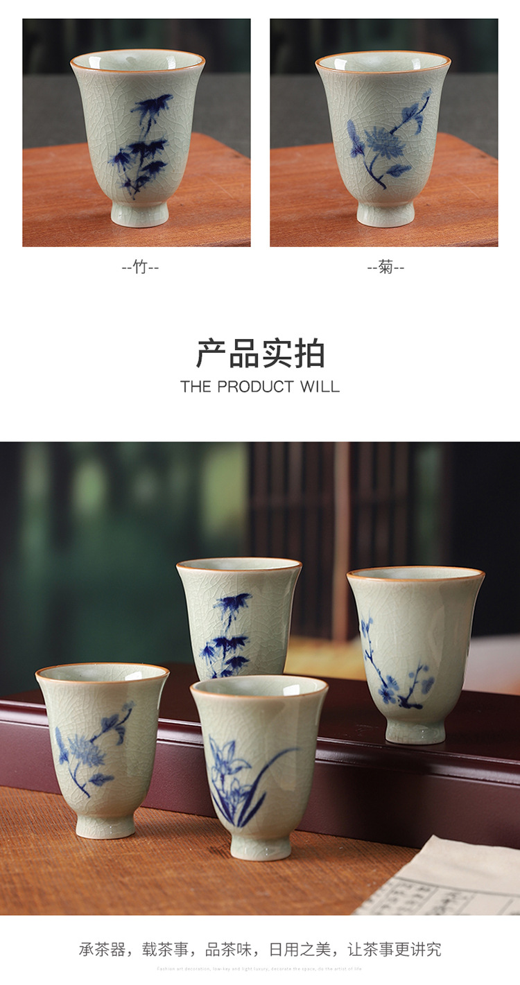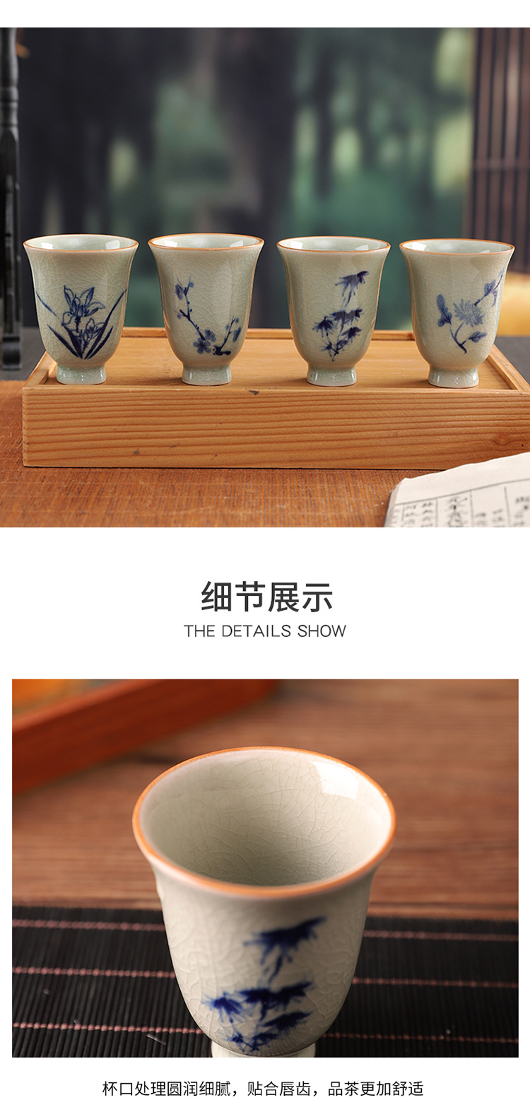 中式哥窑开片美人杯家用茶桌茶台品茗杯梅兰竹菊彩绘四君子茶盏