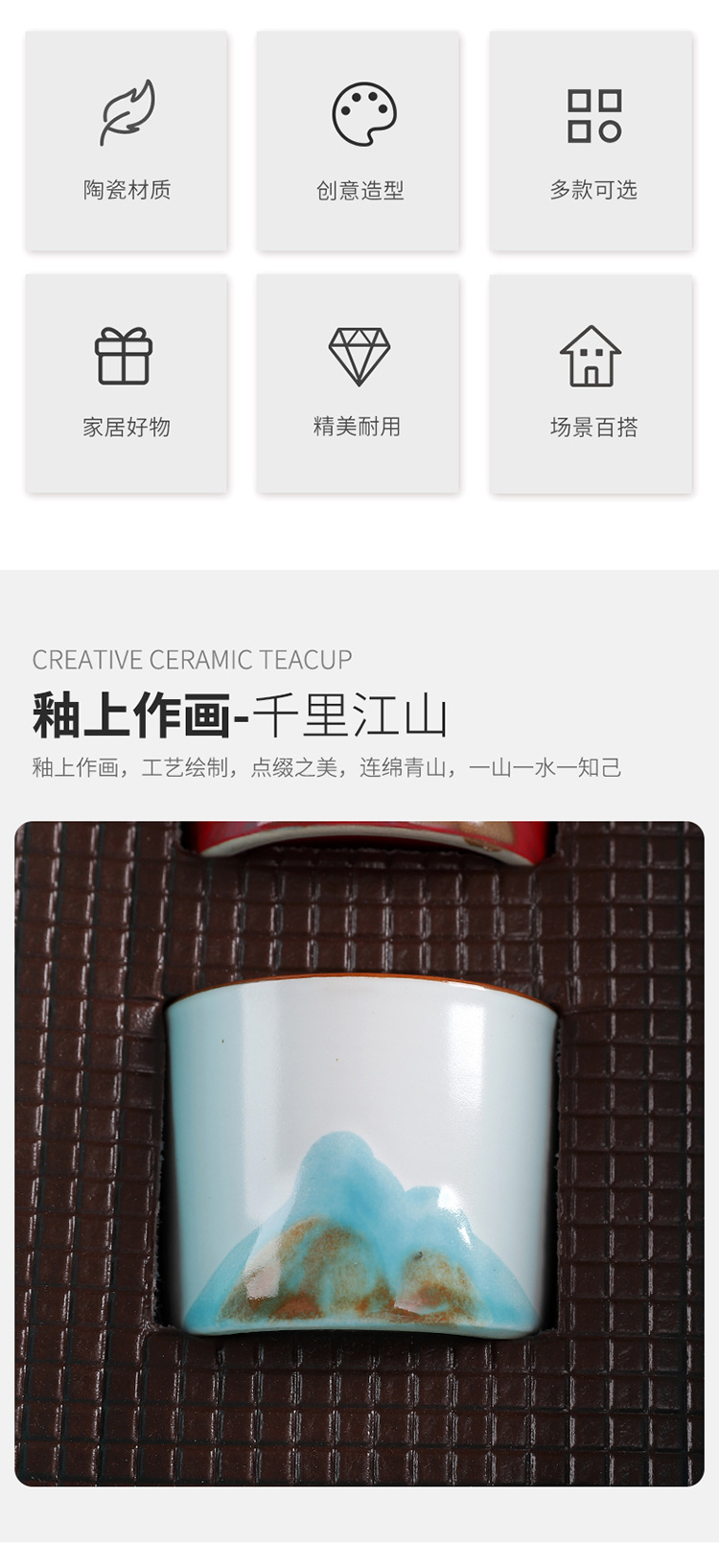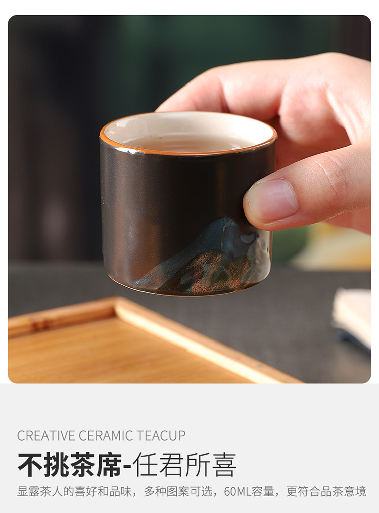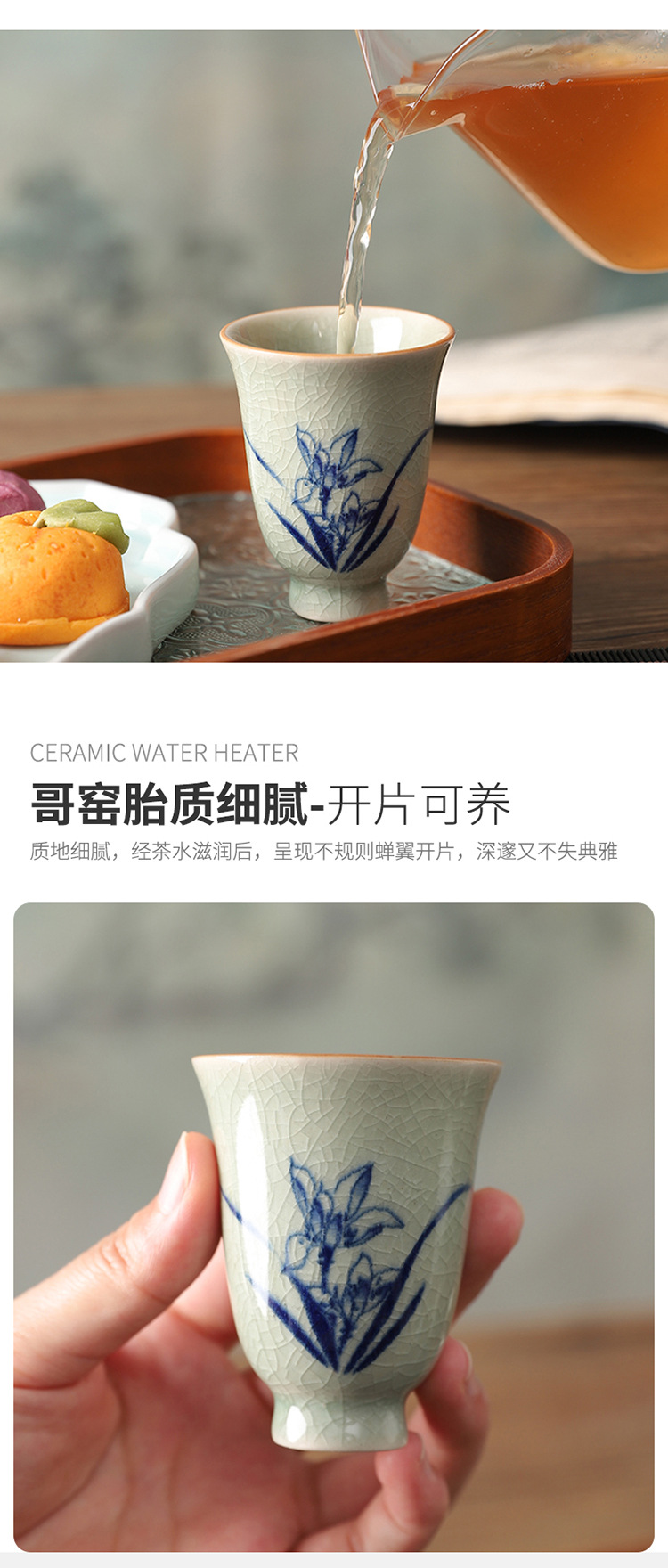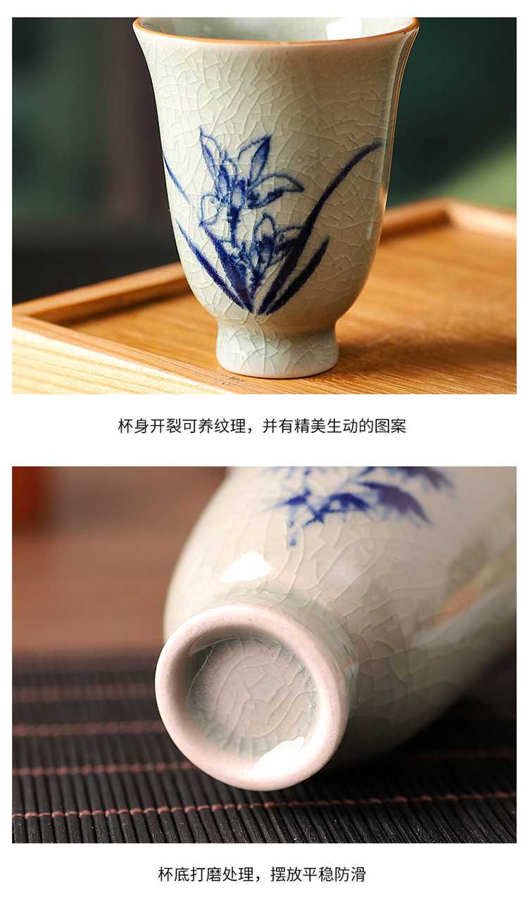 中式哥窑开片美人杯家用茶桌茶台品茗杯梅兰竹菊彩绘四君子茶盏