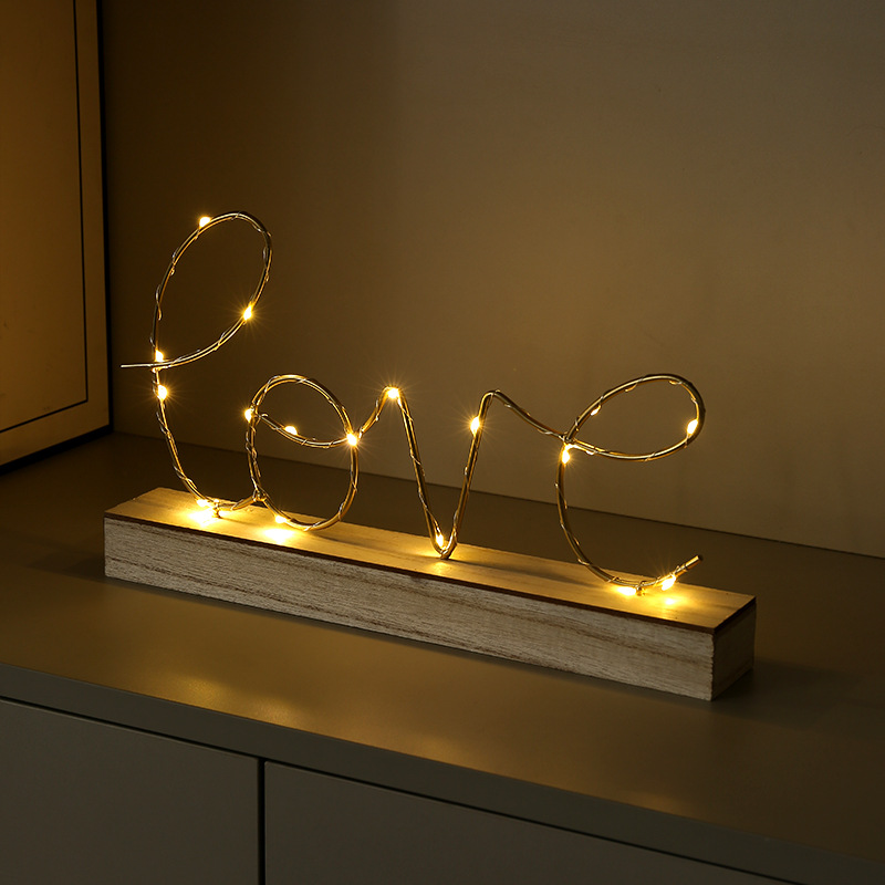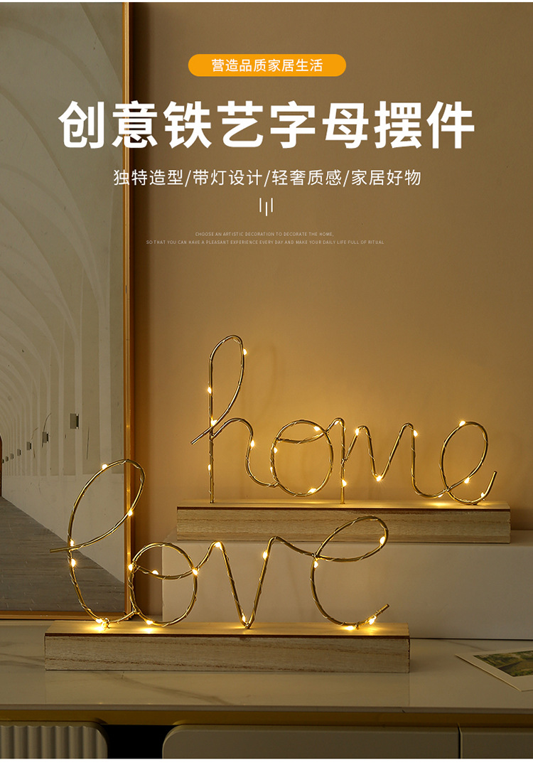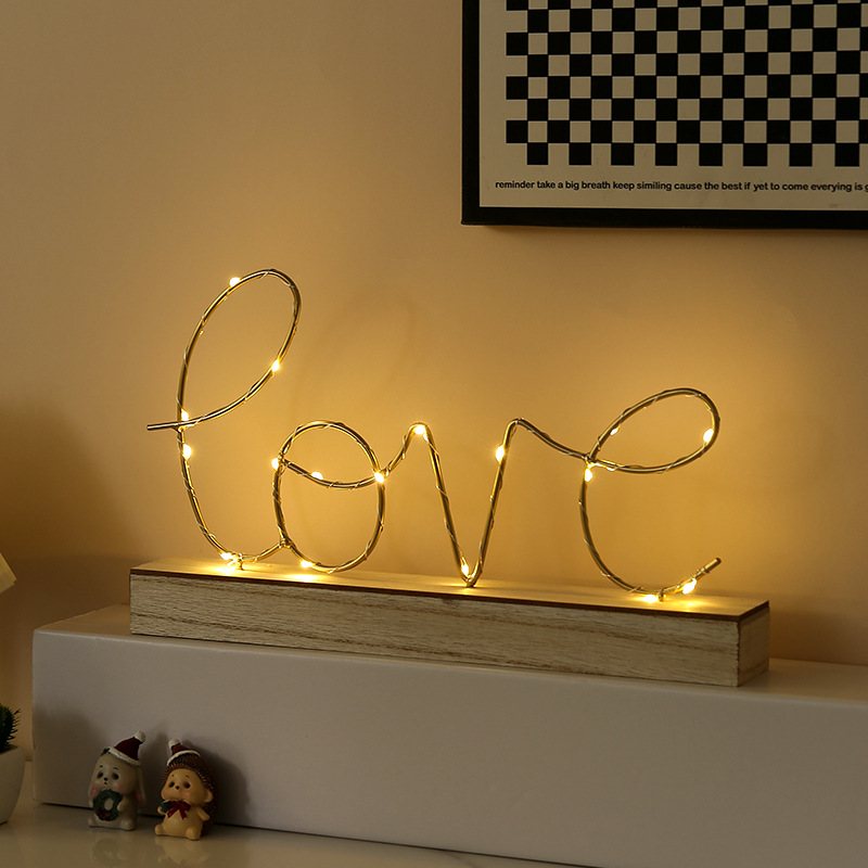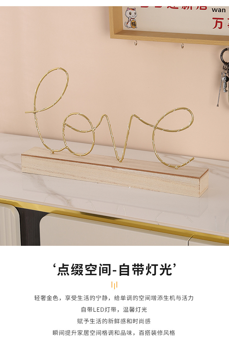 简约创意发光LOVE字母摆件家居书房卧室桌面装饰品LED夜灯摆件礼