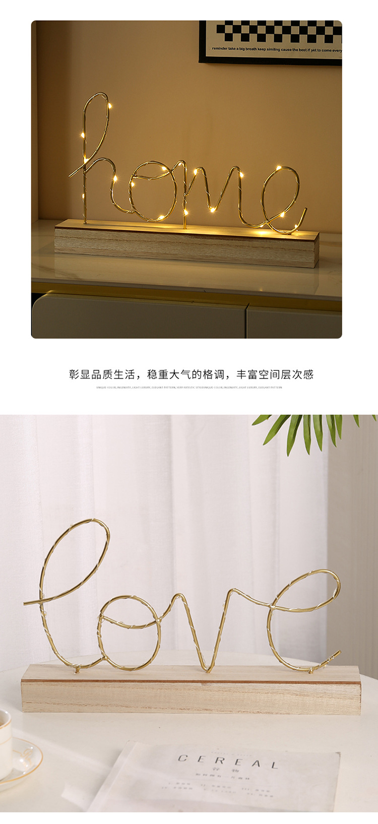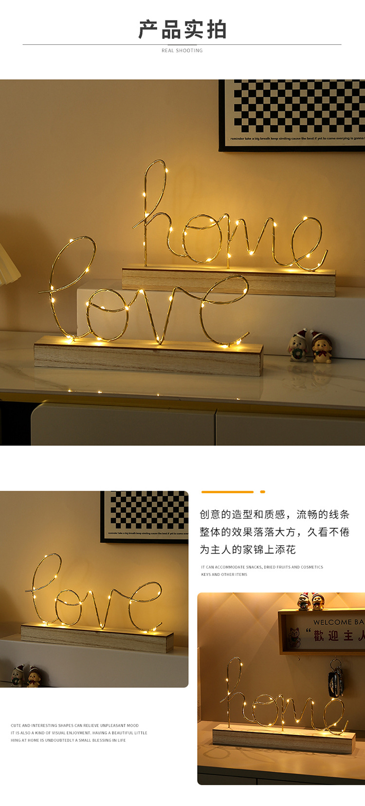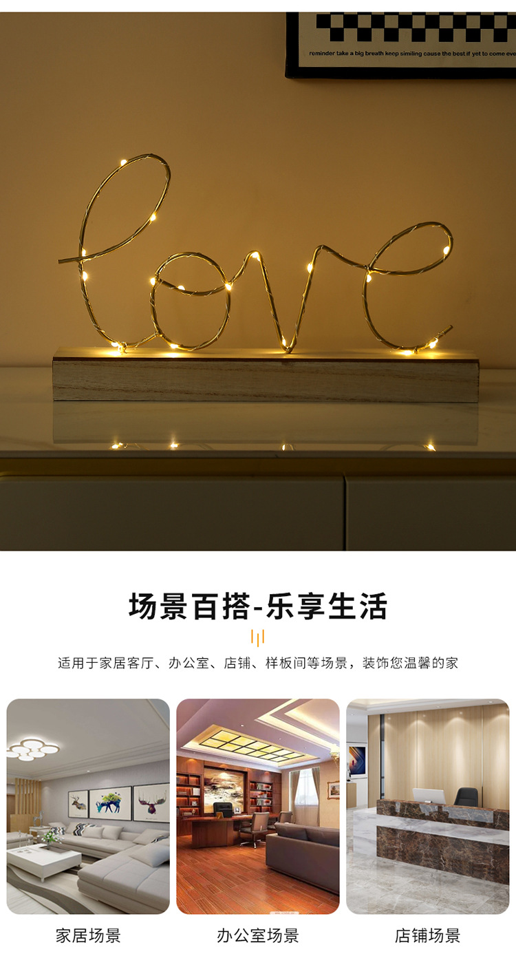 简约创意发光LOVE字母摆件家居书房卧室桌面装饰品LED夜灯摆件礼