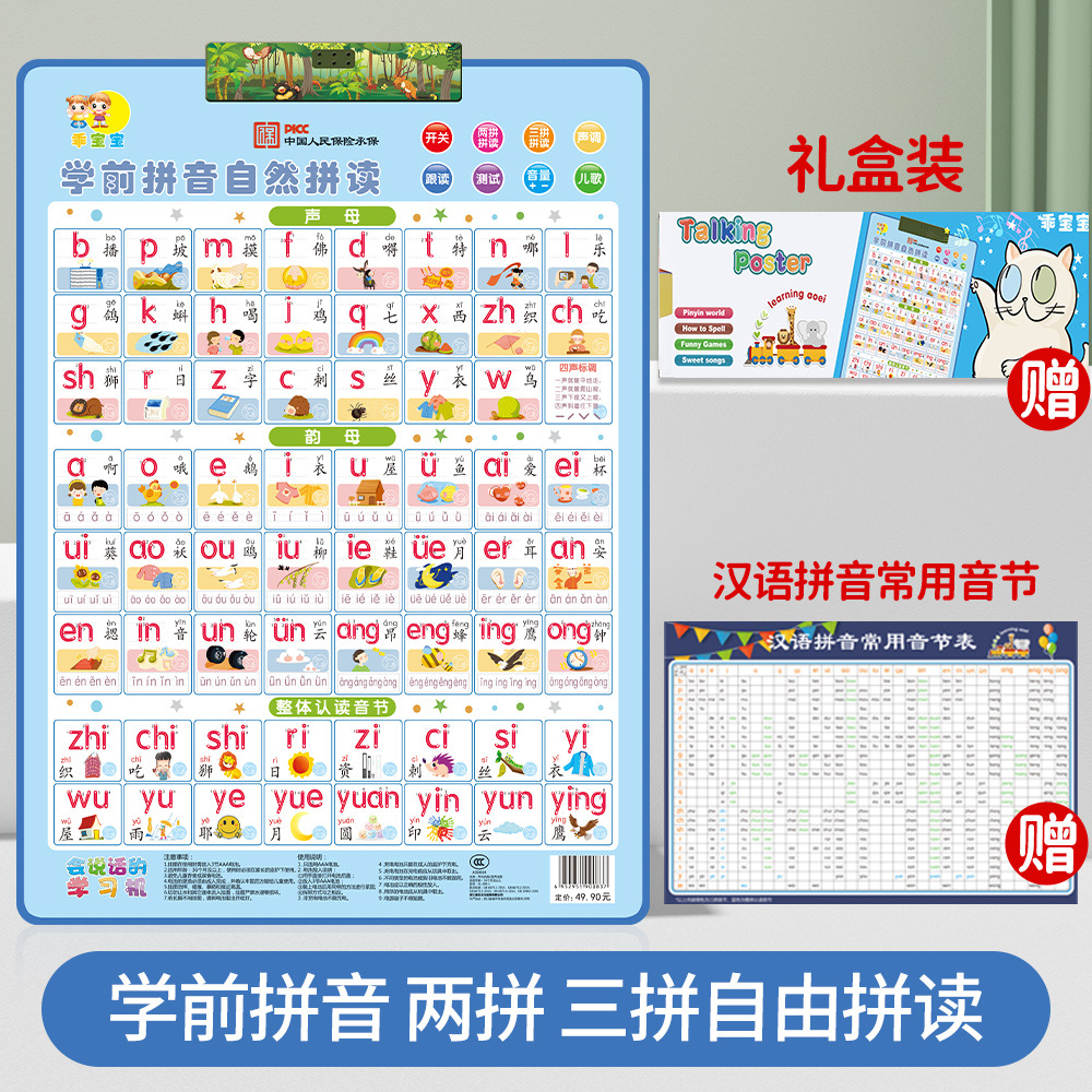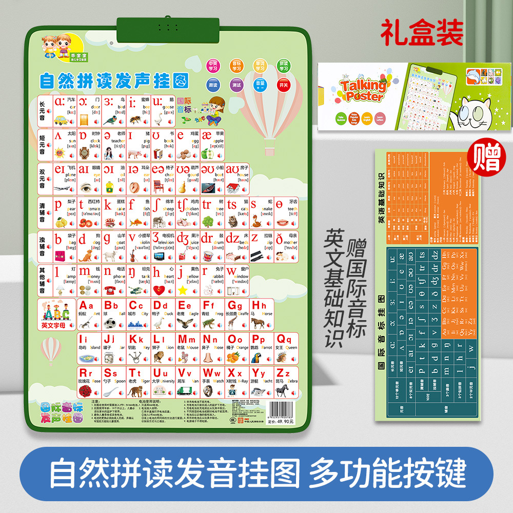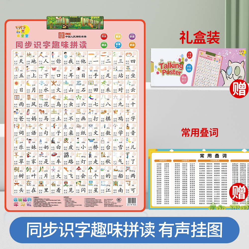 同步识字 趣味拼读有声挂图,一共4个系列,彩盒包装,45盒/件,彩盒内赠送一张学习挂图