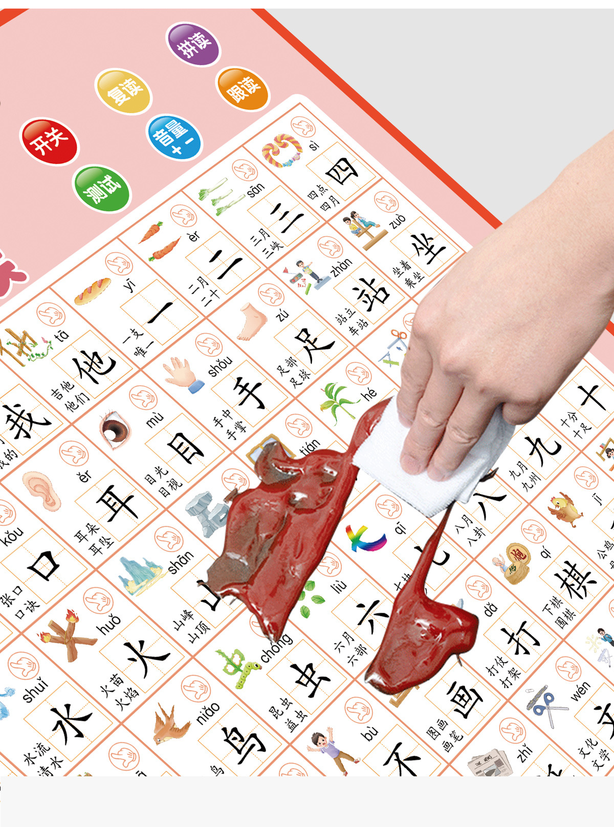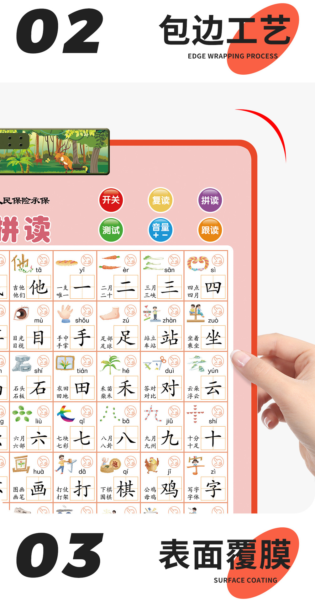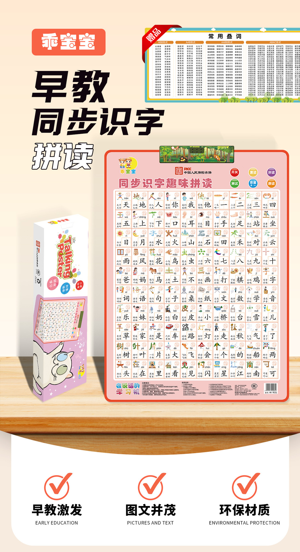 同步识字 趣味拼读有声挂图,一共4个系列,彩盒包装,45盒/件,彩盒内赠送一张学习挂图