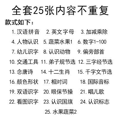 宝宝早教认知启蒙无声挂图汉字声母韵母拼音促销赠品墙贴卡片批发
