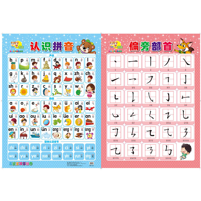 婴幼儿童启蒙认知识字防水双面挂图早教墙贴挂画拼音数字直销厂家