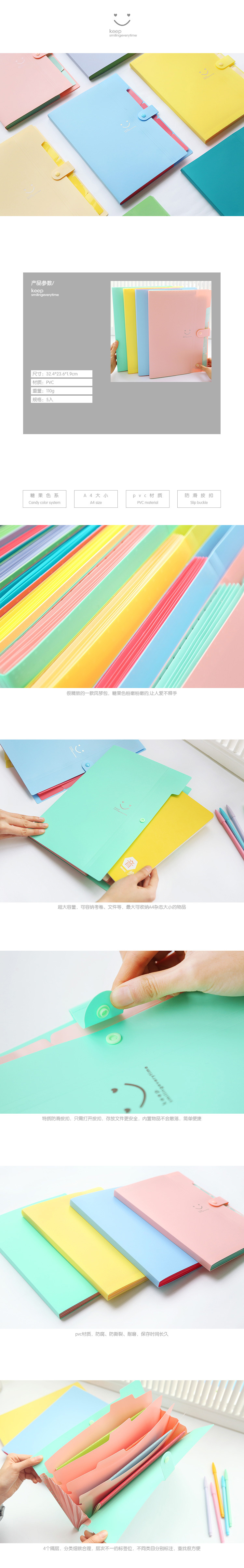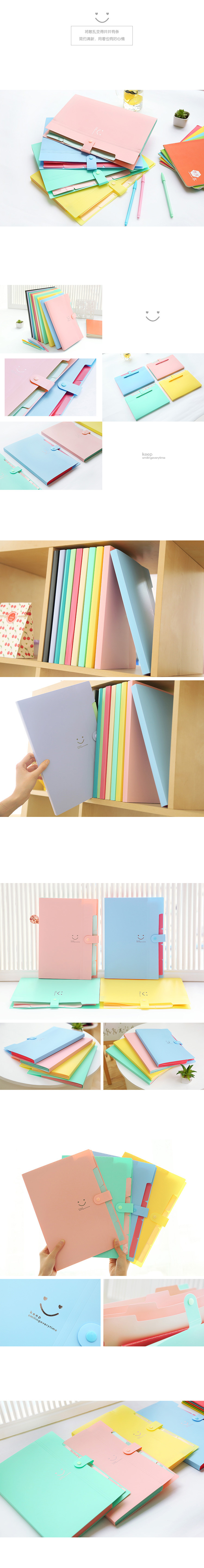 pp多功能文件夹 韩国糖果色多层档案袋塑料5入资料册办公用品
