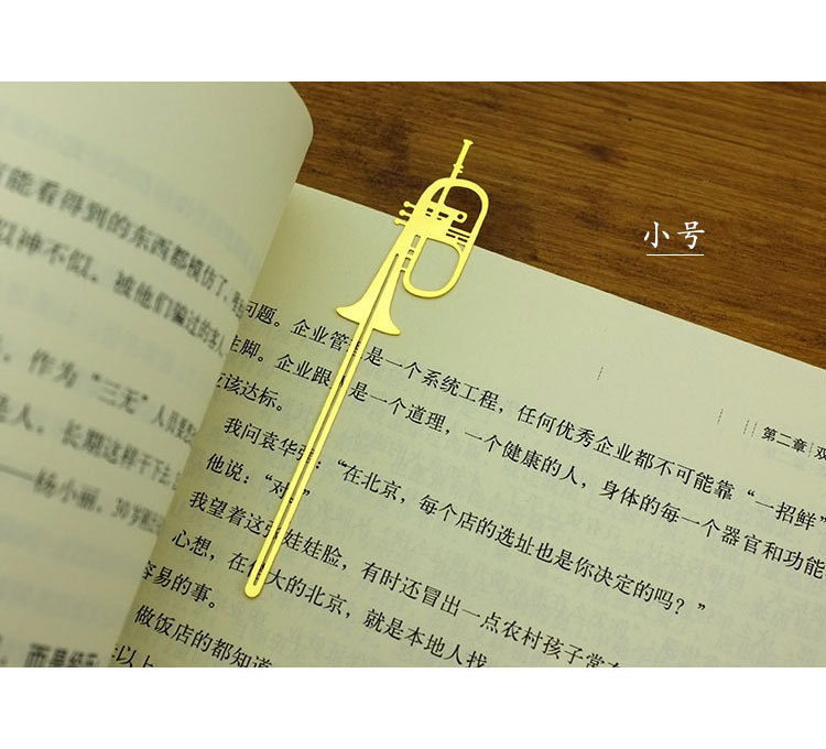 唯美音符乐器书签镂空金属创意小号/小提琴/号角/音符书夹