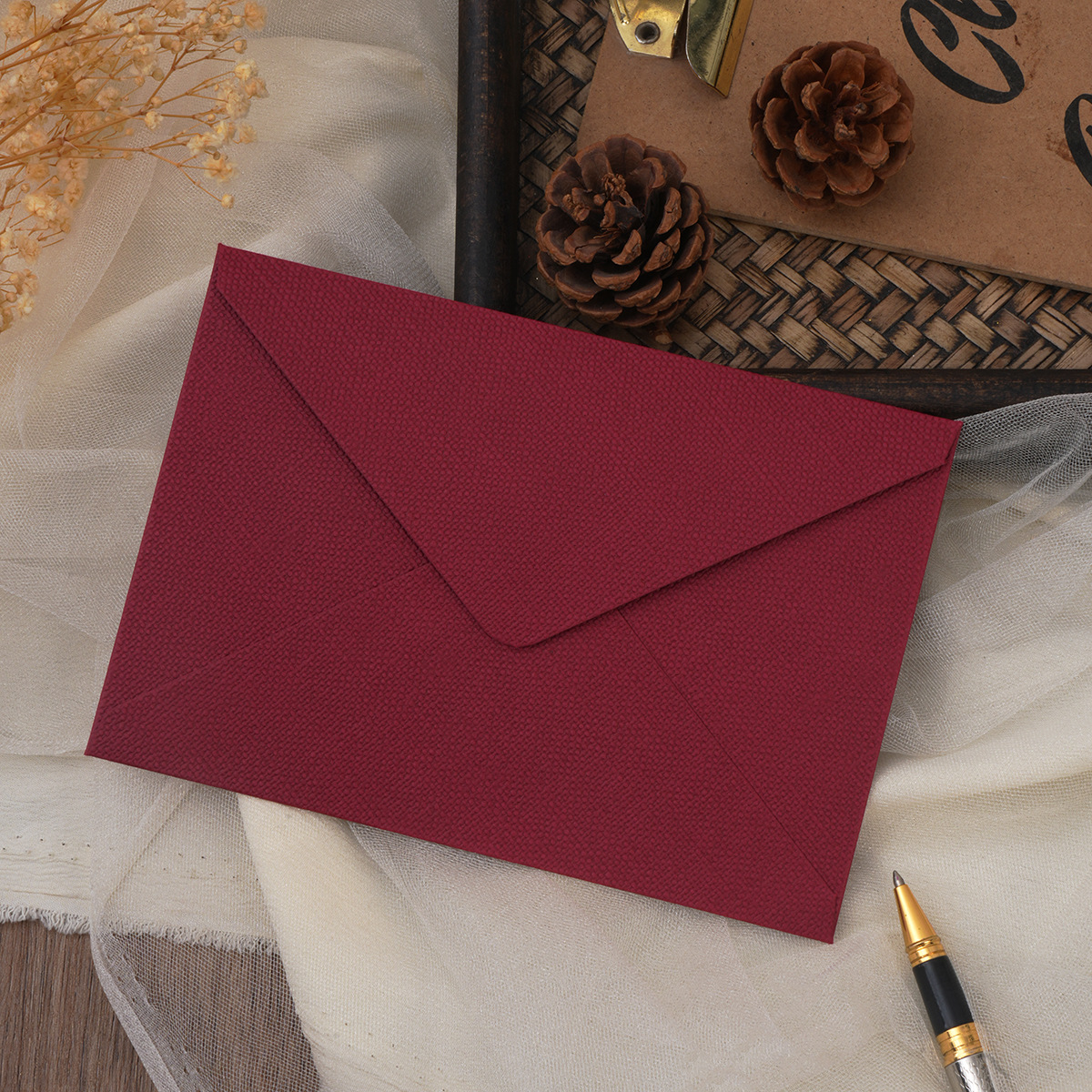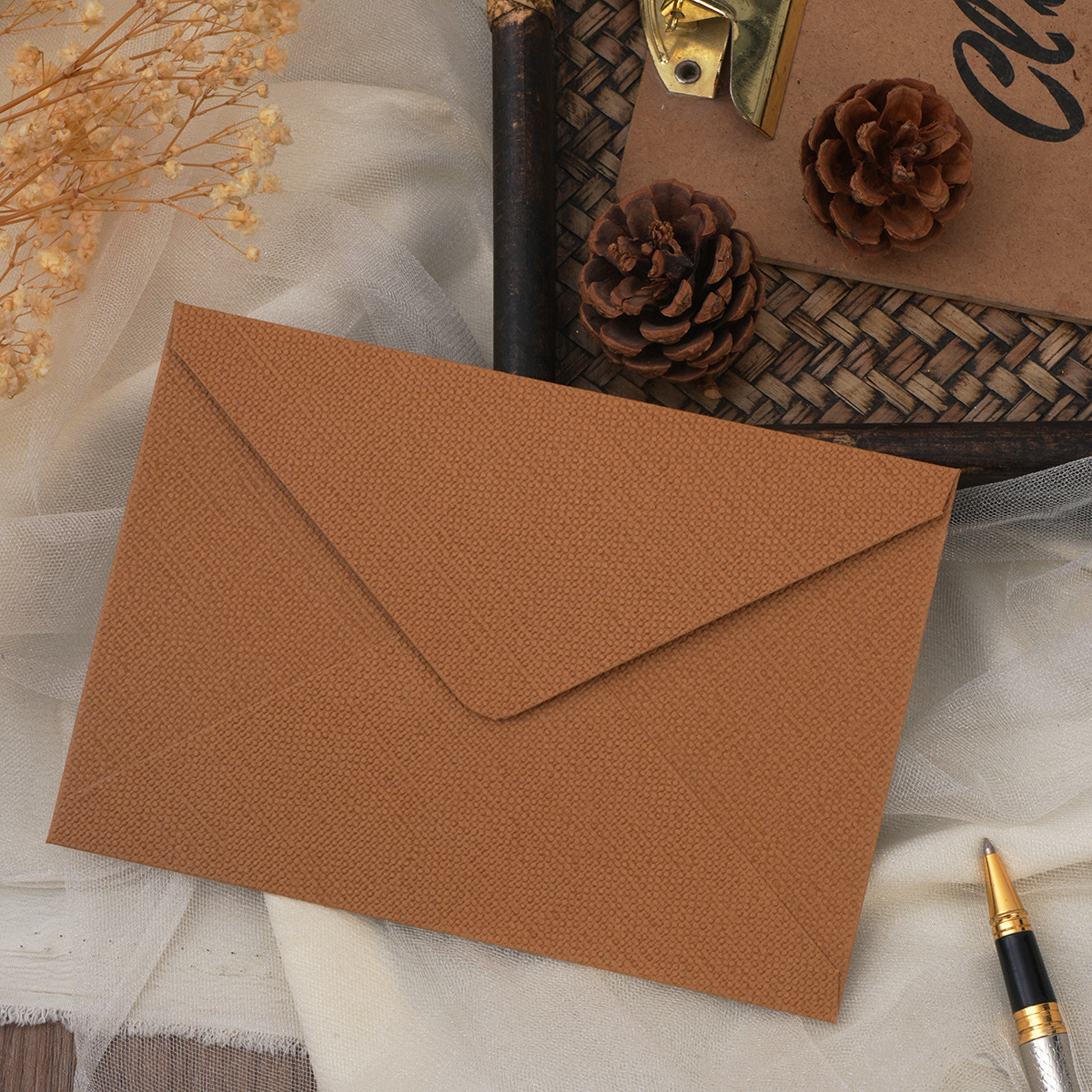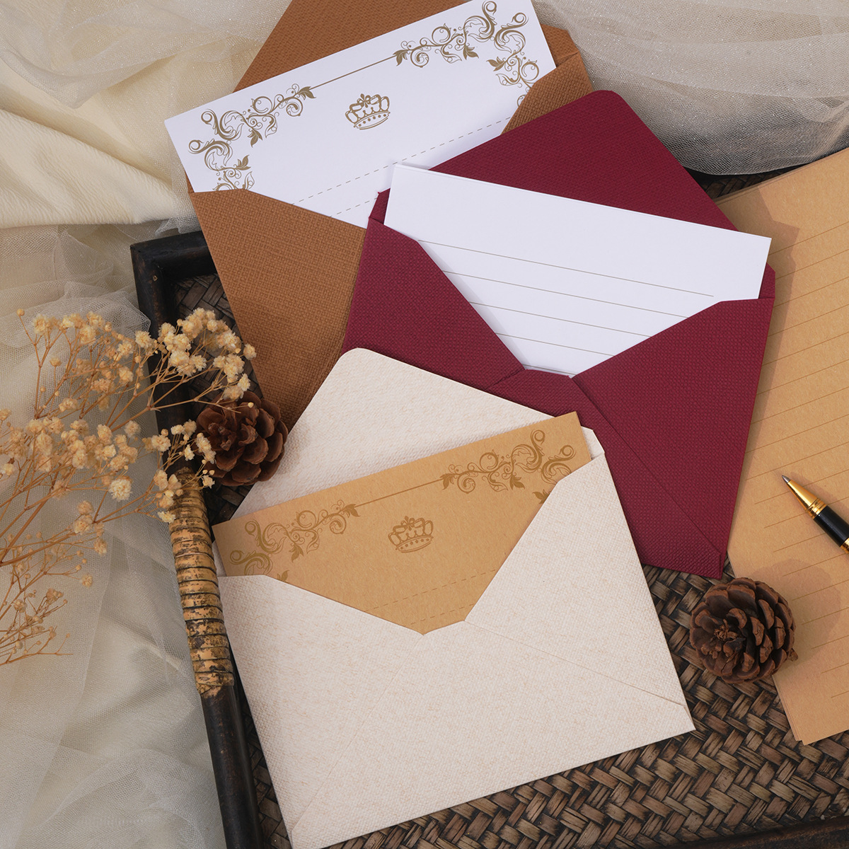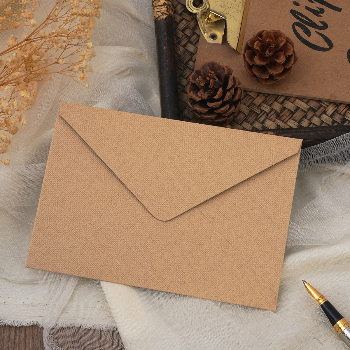 复古麻布纹信封信纸套装中国风牛皮特种纸火漆简约信封