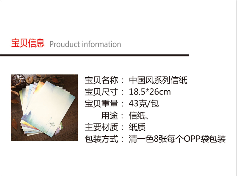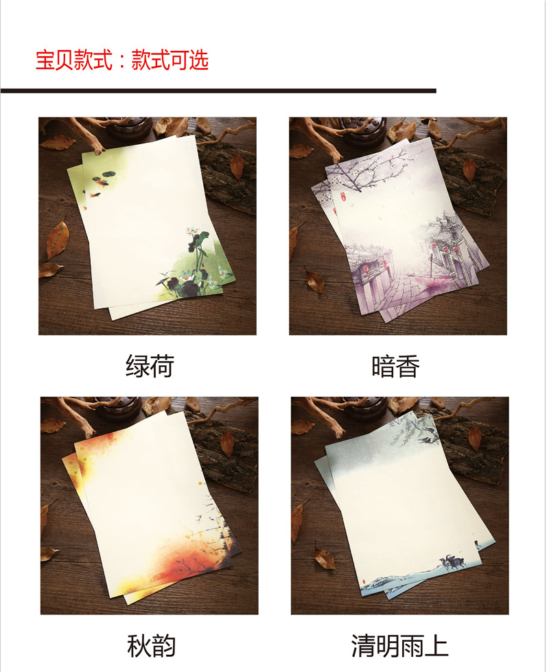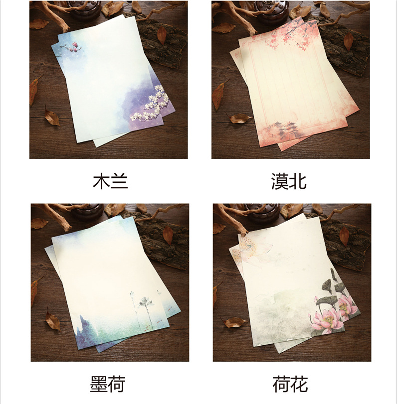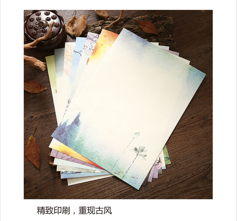 中国风信纸 一套8张 复古信封信纸批发 可书写打印信纸定制