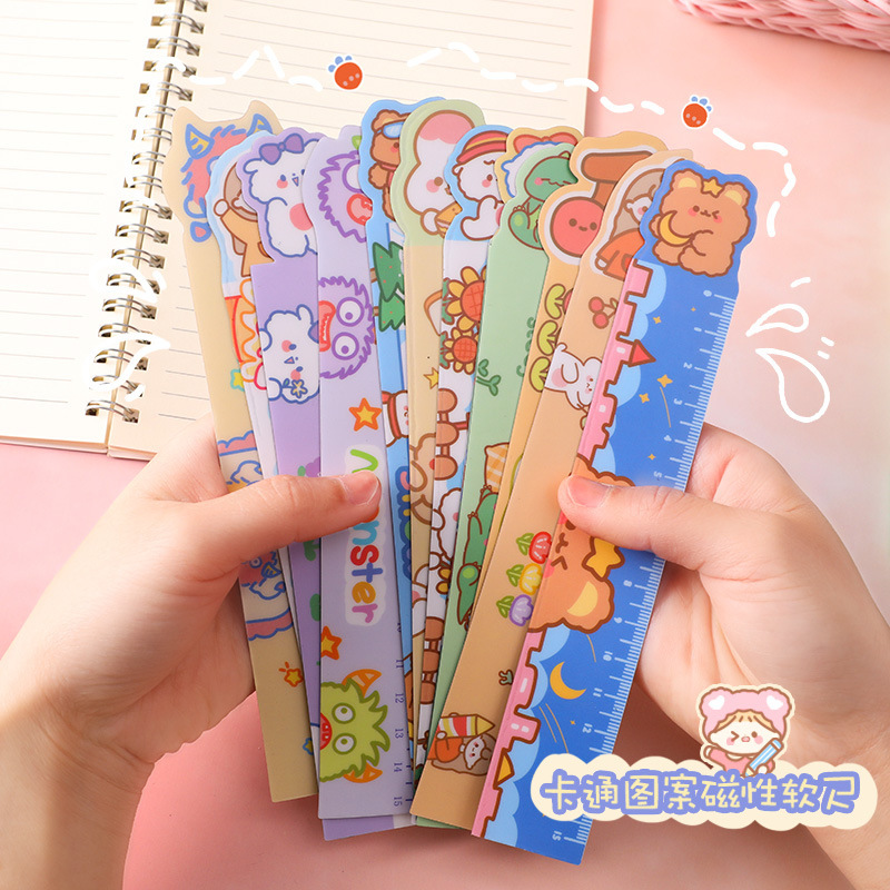 可爱卡通动物软尺子 ins少女心可弯曲磁性直尺小学生绘图测量工具