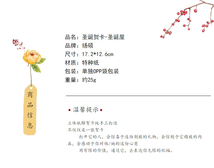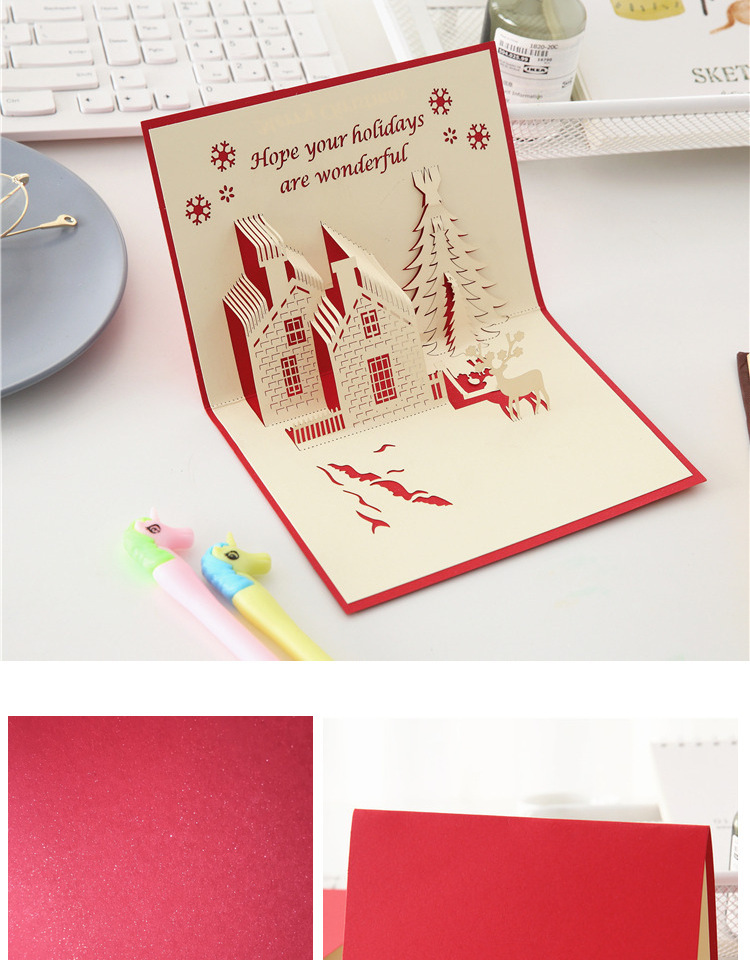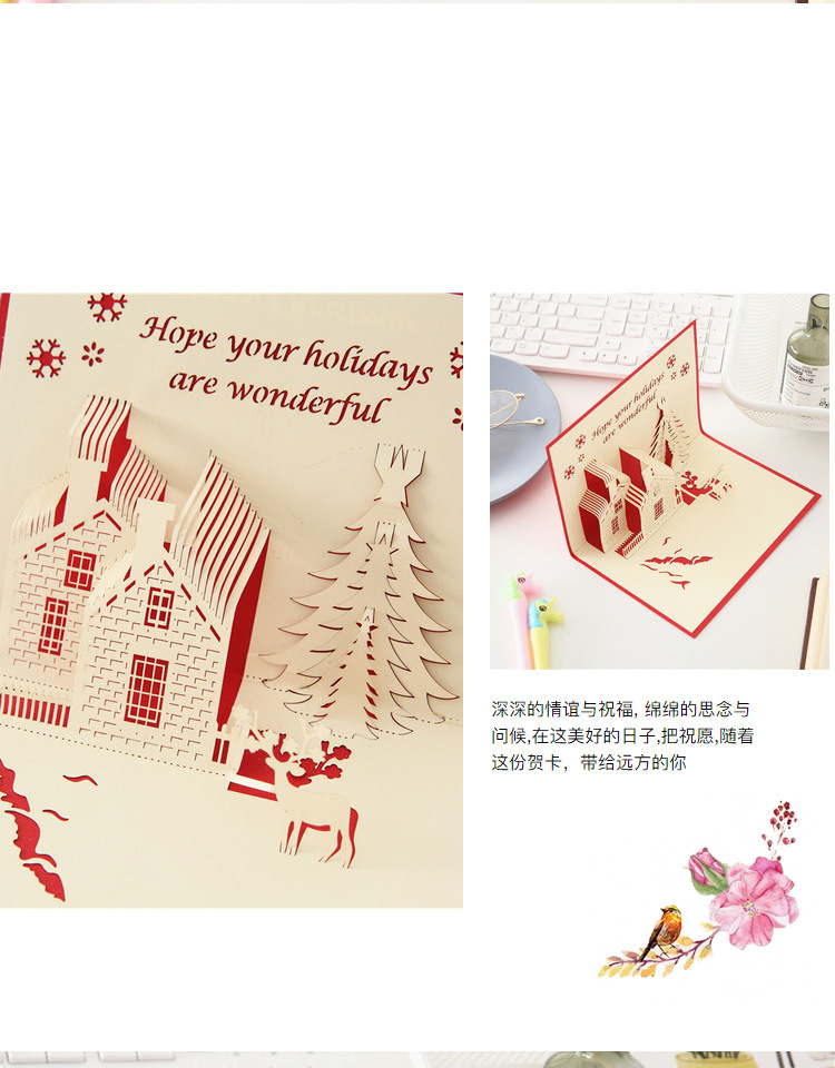圣诞节创意立体圣诞贺卡 3D镂空手工贺卡定制祝福小卡片圣诞城堡