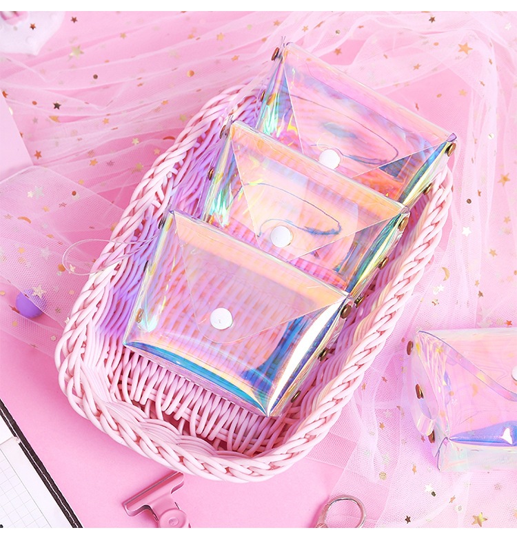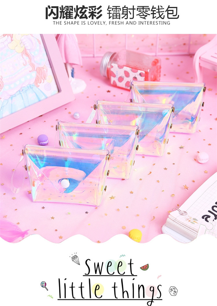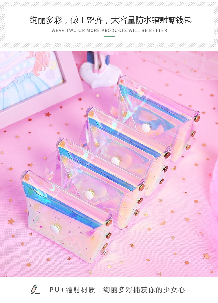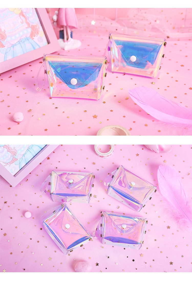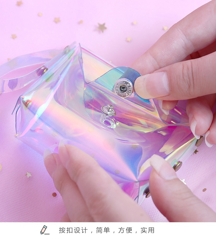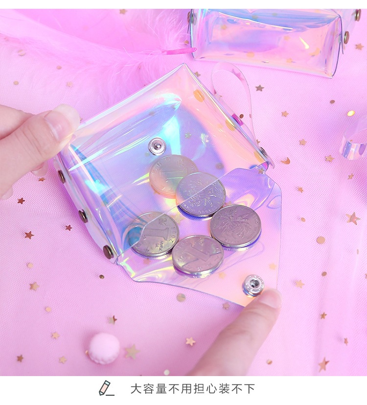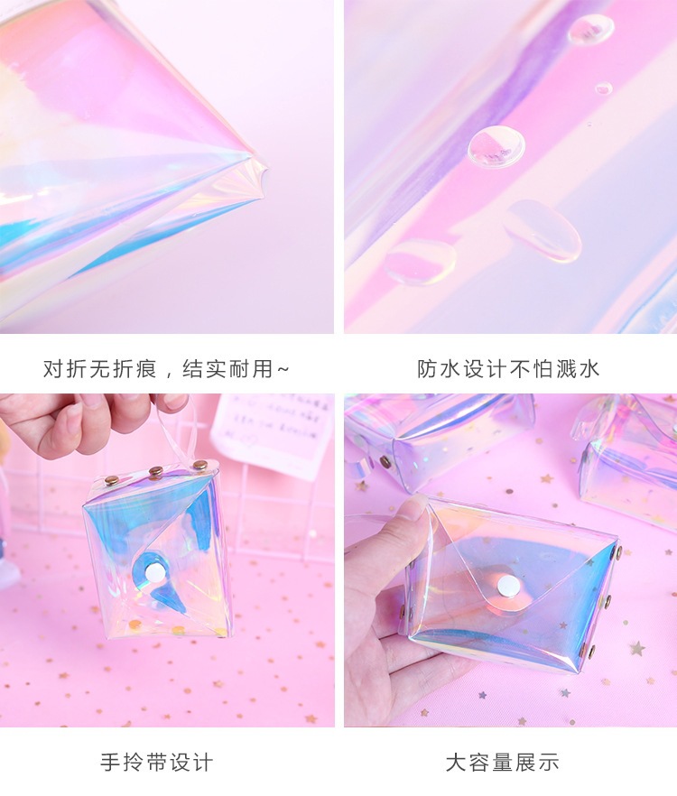 少女心镭射零钱包手机ins网红果冻收纳包透明方形数据线包女