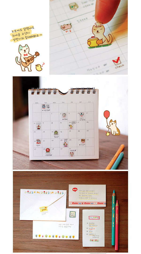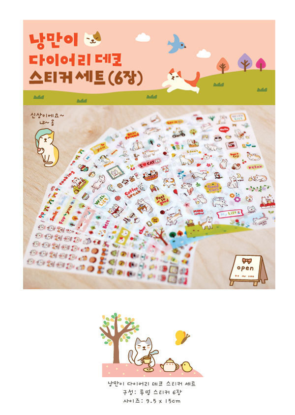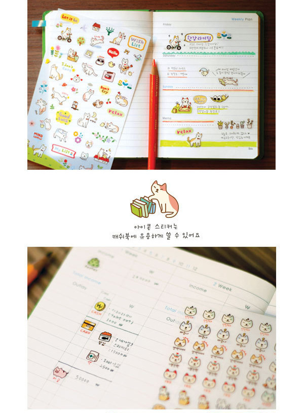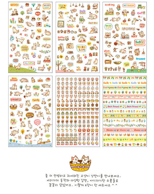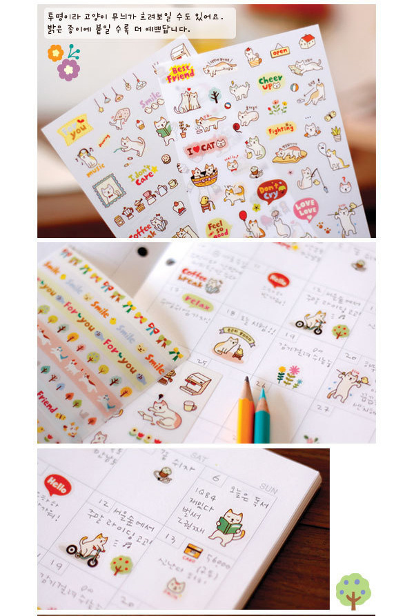 韩国创意文具可爱猫咪日记本装饰贴纸组卡通动物不干胶贴纸