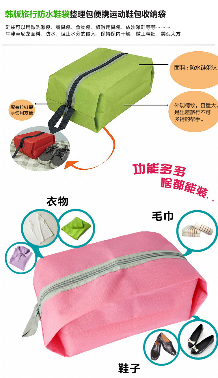 新款牛津布束口防水收纳鞋袋 挂式收纳鞋袋 旅行收纳鞋袋