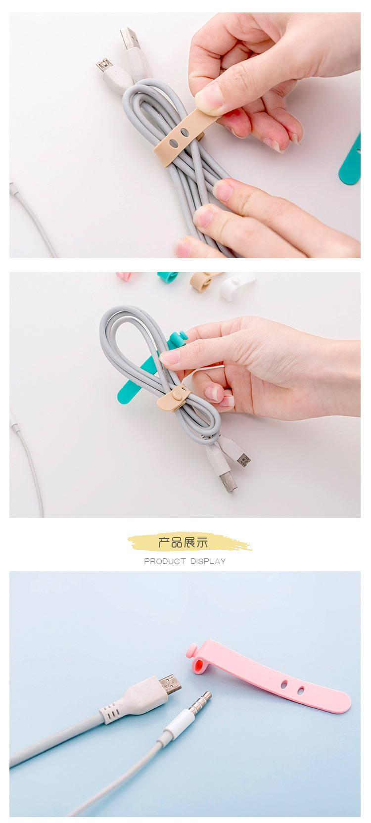 硅胶绑带耳机线整理器防丢数据线收纳整理卡扣手机充电线绕线器
