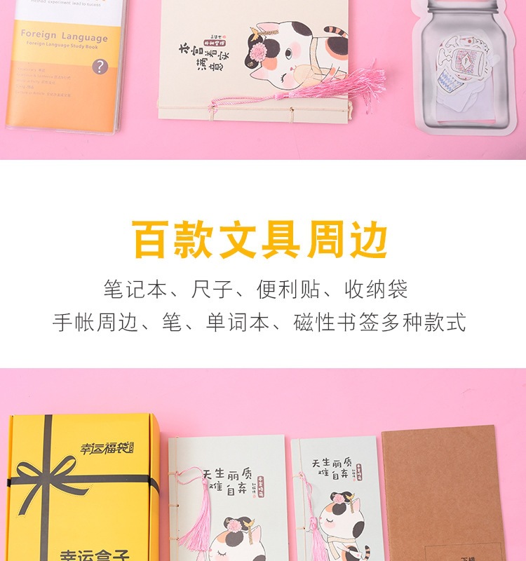 新款创意文具盲盒套装文具礼盒学生套装礼盒ins手账幸运盒子