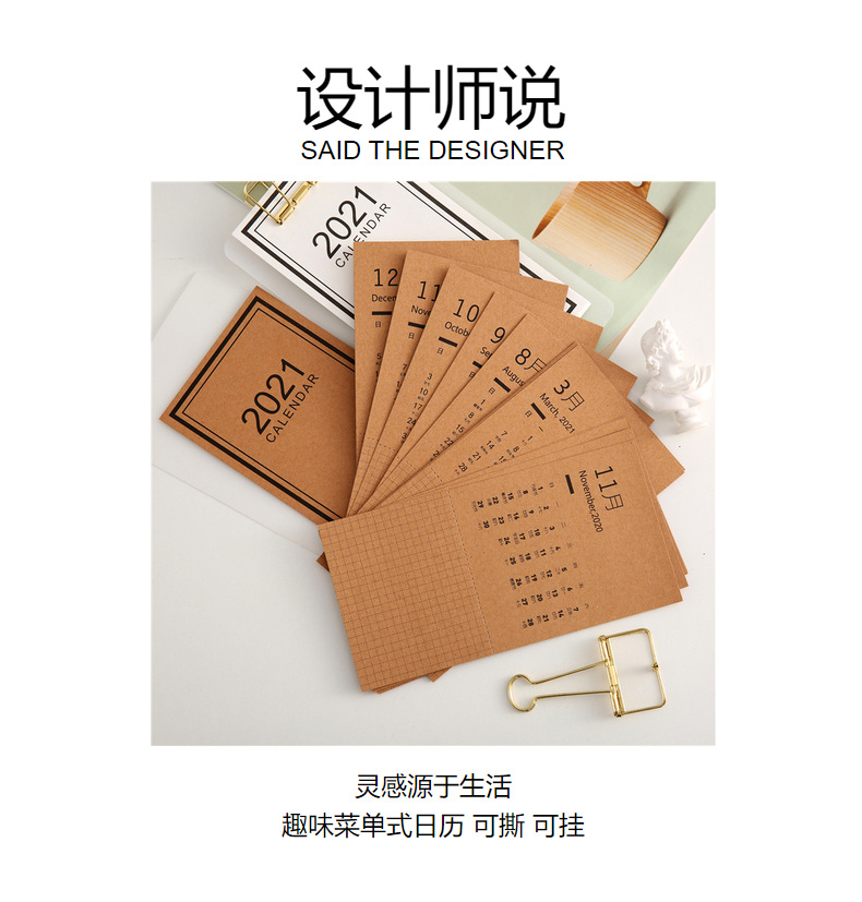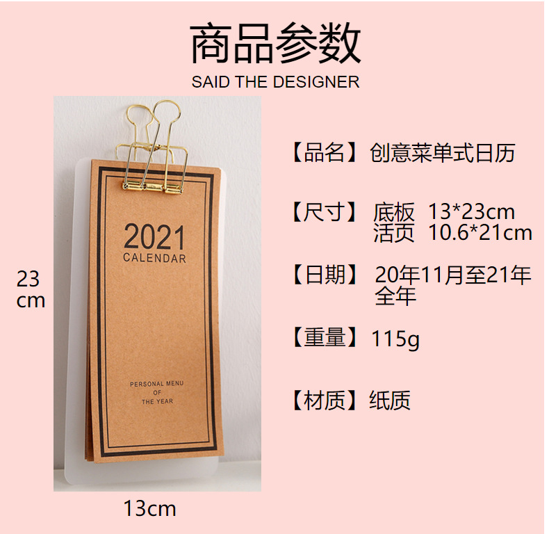 2021年菜单式日历简约创意定制DIY活页日程计划台历小号挂历