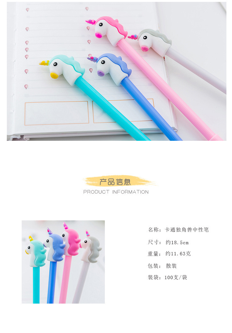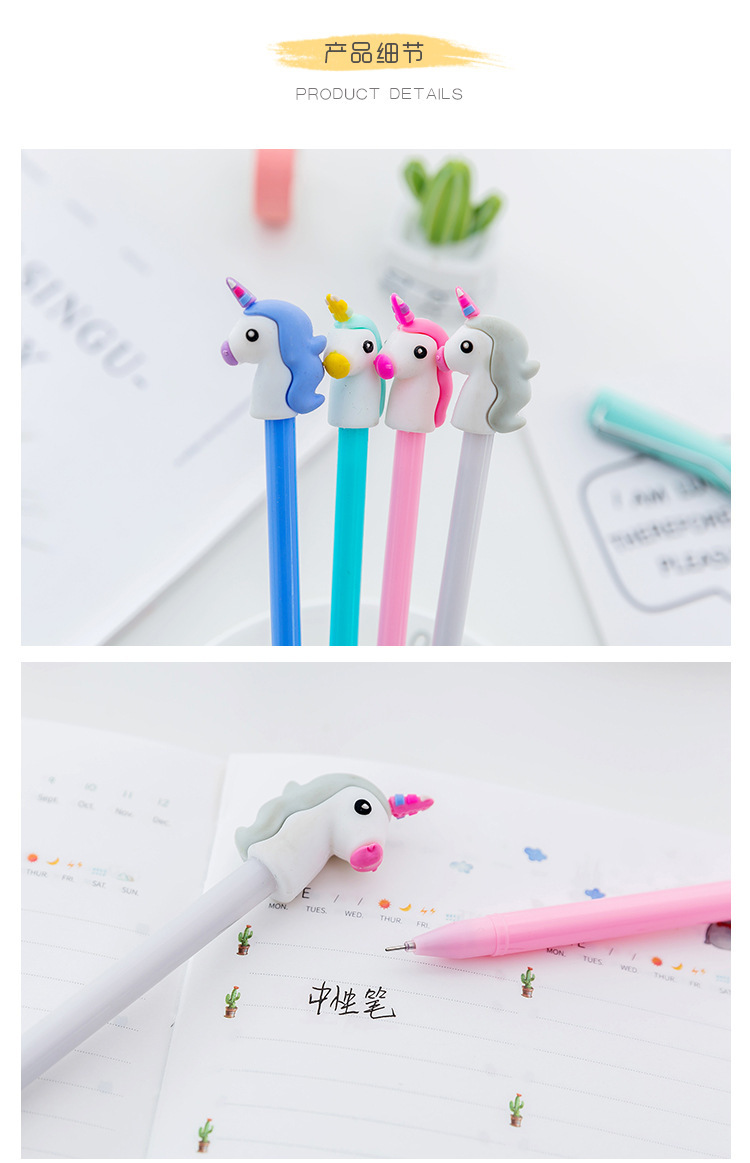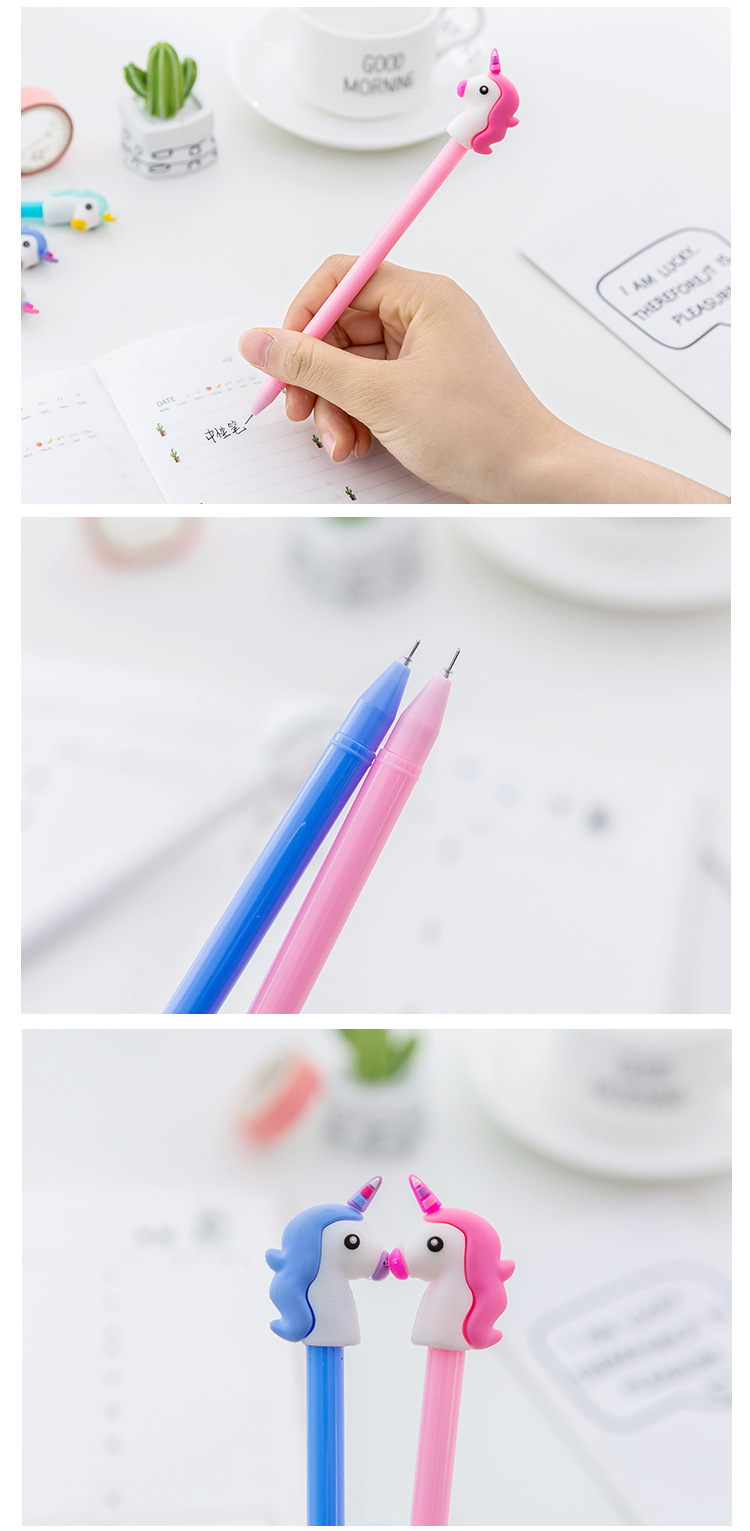 日韩国文具独角兽小清新可爱黑色水笔 创意中性笔签字笔学习