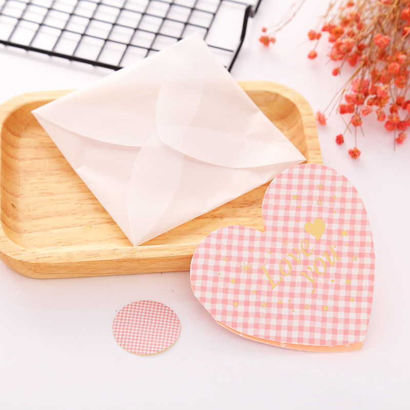 韩国祝福语爱心贺卡情人生日礼品商务卡片心形折叠留言卡 可定制