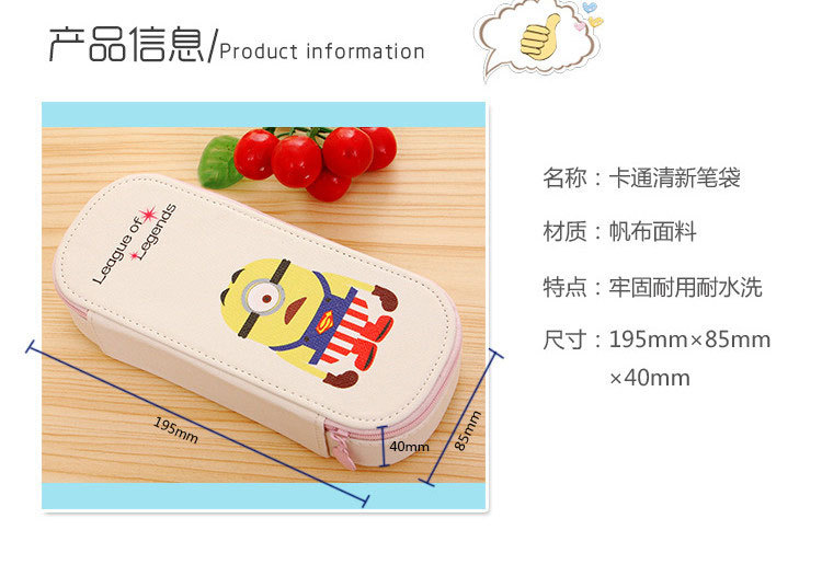 韩国创意文具 学生可爱卡通帆布大容量笔袋 简约大容量铅笔盒
