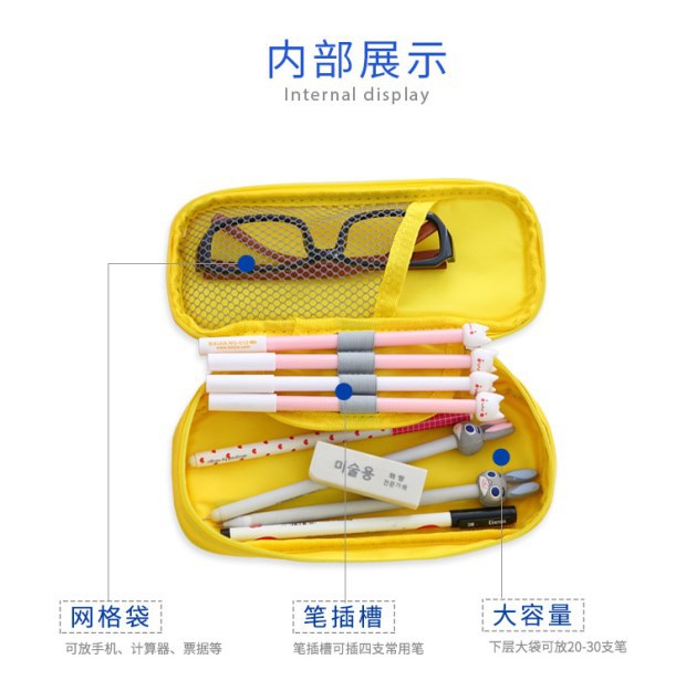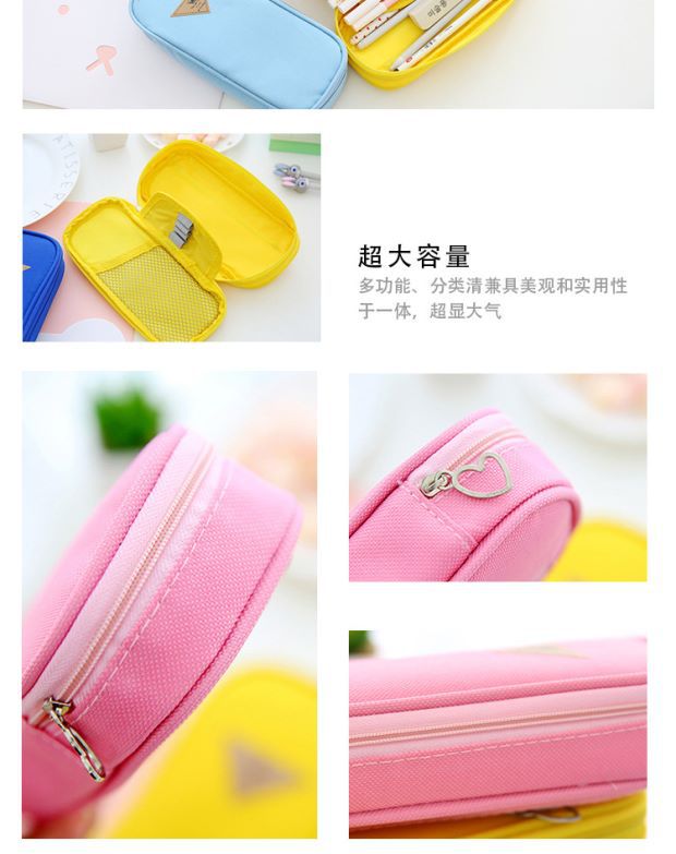 韩国创意简约大容量笔袋男女学生 帆布铅笔盒学习文具盒