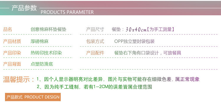 学生餐垫 可爱布艺餐桌垫加厚碗垫杯垫隔热垫西餐垫儿童 批发