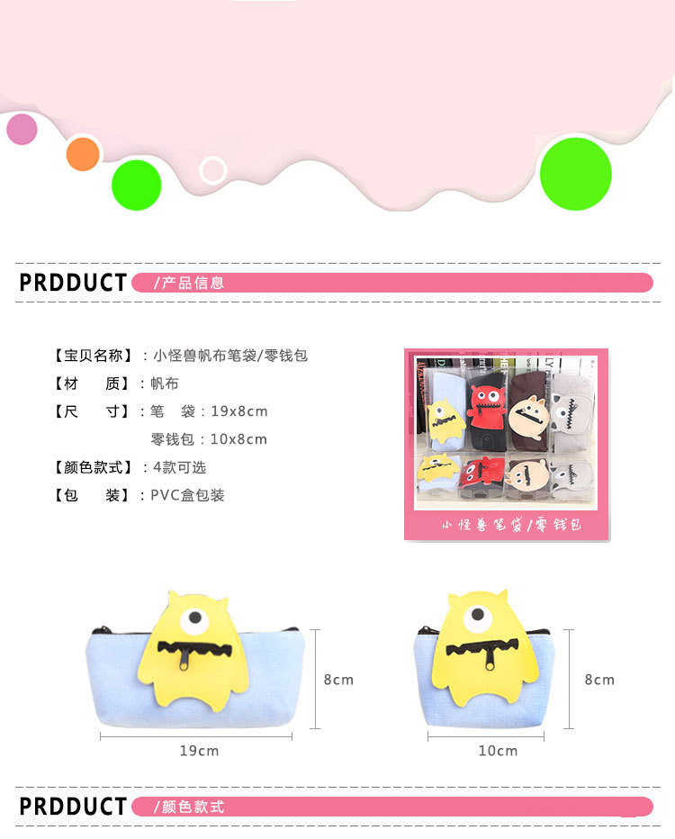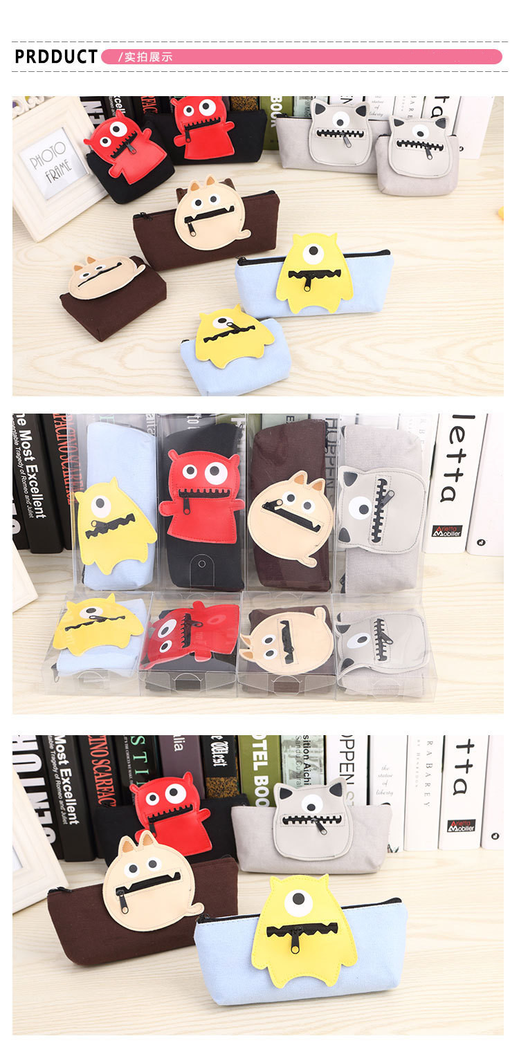 创意韩国文具 可爱怪兽笔袋高档文具袋 精装学生文具铅笔袋男女