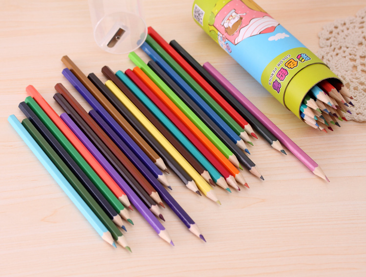 彩色铅笔 韩国卡通12色244色彩色铅笔素描 学生文具 纸筒装彩铅