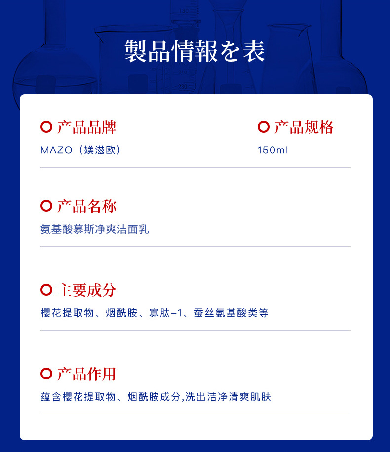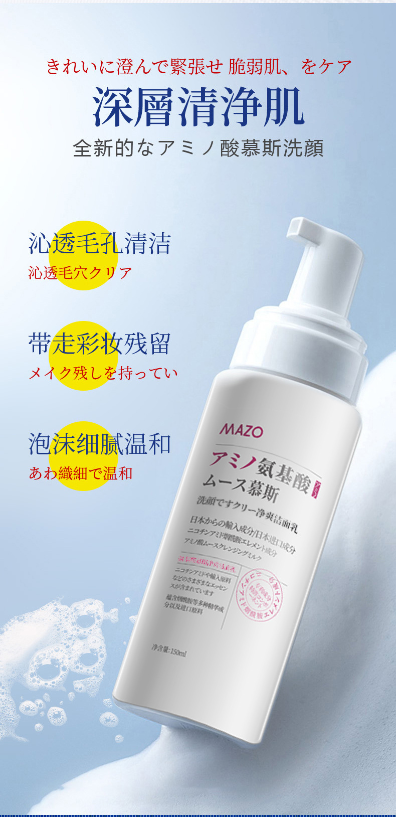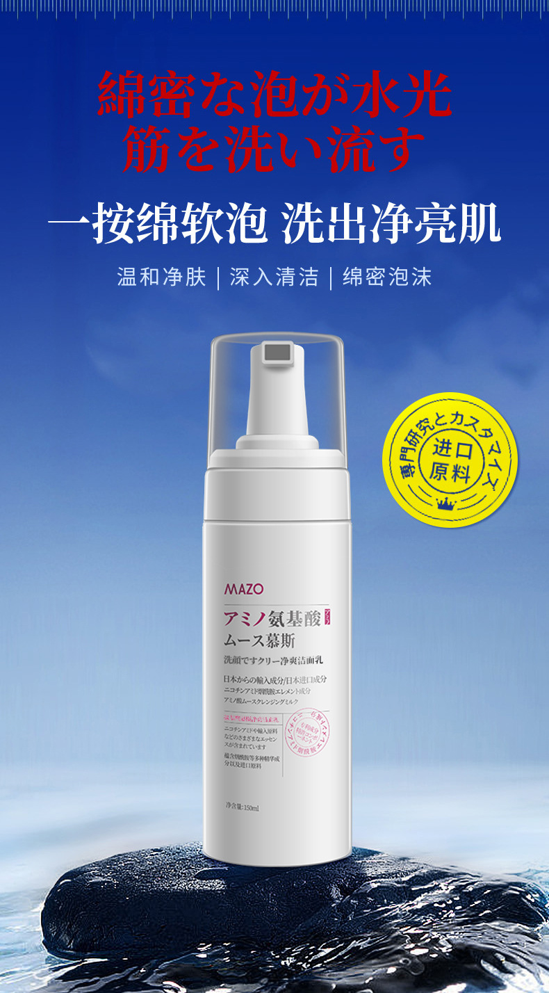 MAZO氨基酸慕斯洁面乳补水保湿温和不拔干洗面奶厂家一件代发
