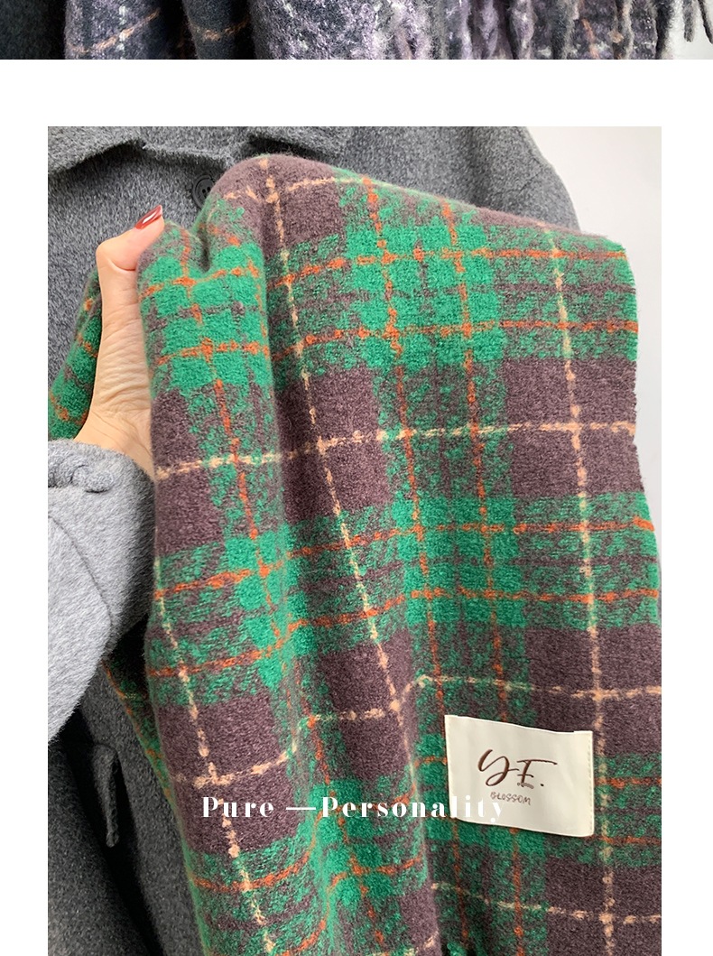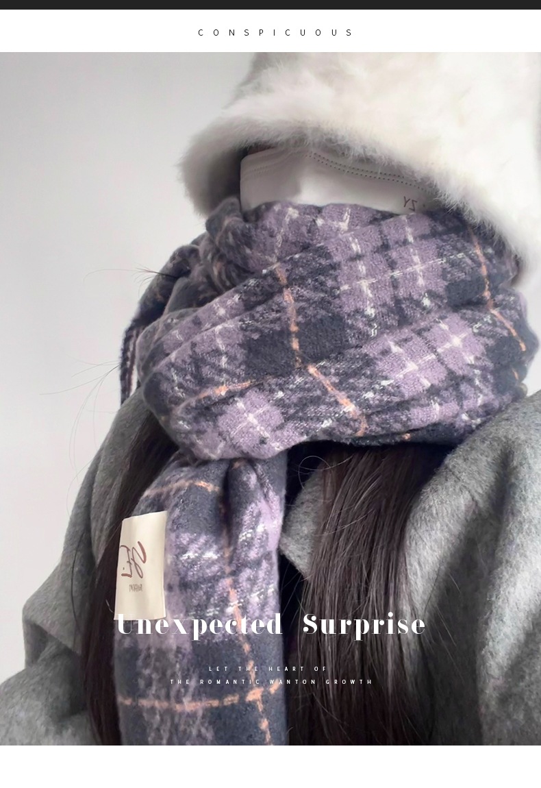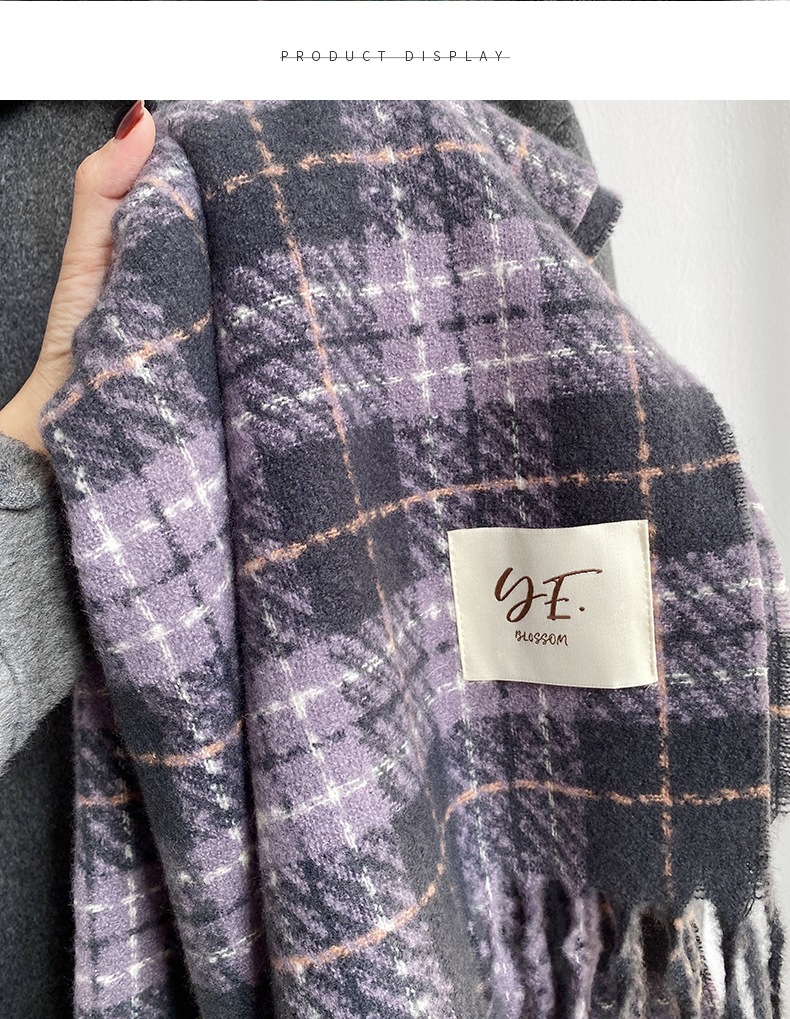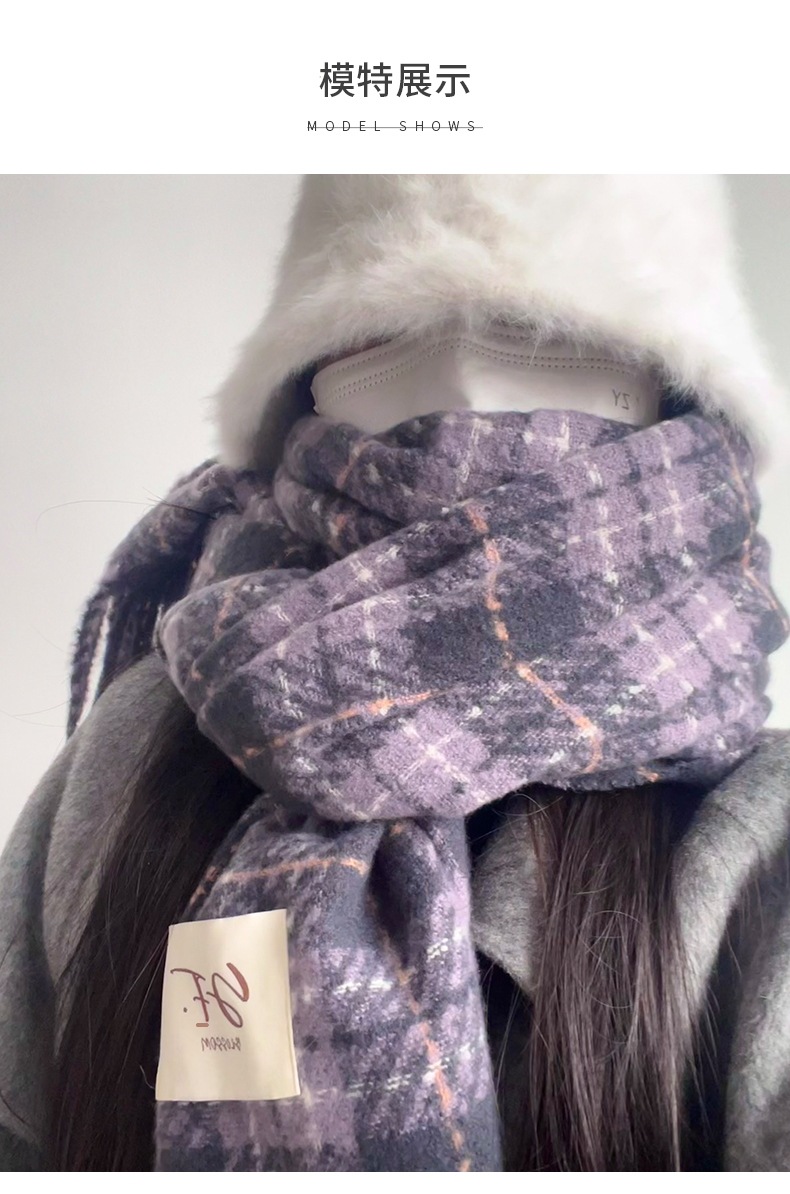 香芋紫格子围巾女韩系氛围感保暖显白柔软流苏披肩时尚仿羊绒围脖