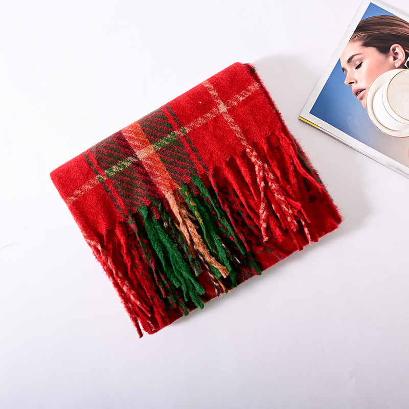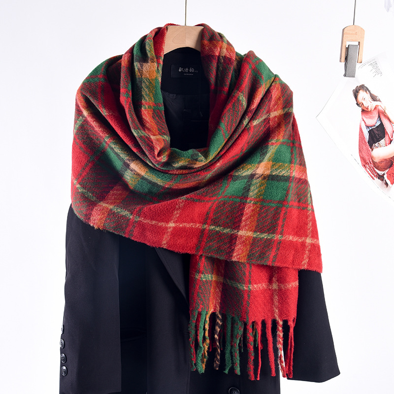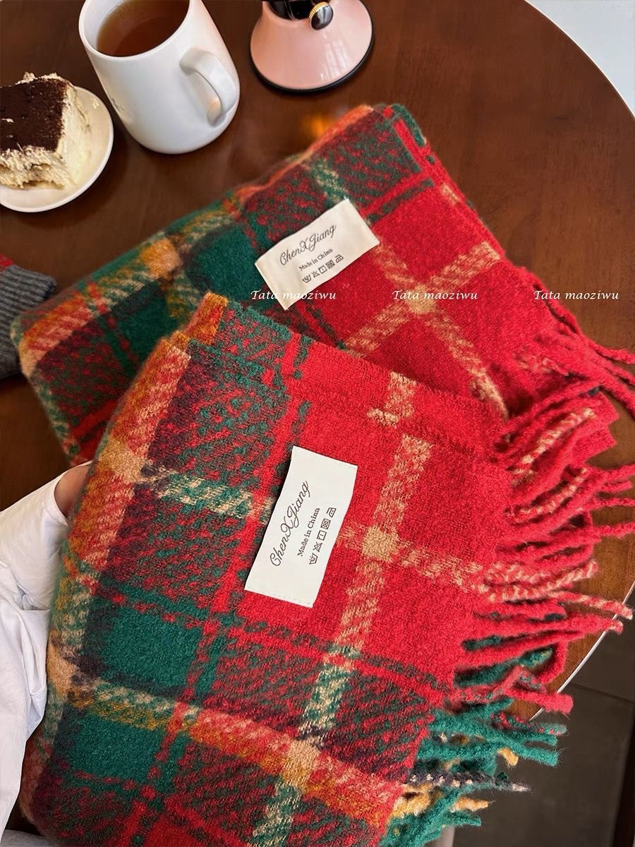 红色格子围巾女高级感秋冬新款百搭仿羊绒围巾圣诞款新年款氛围感
