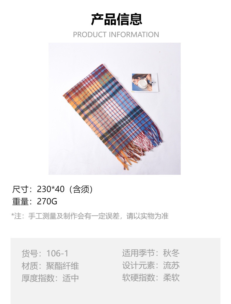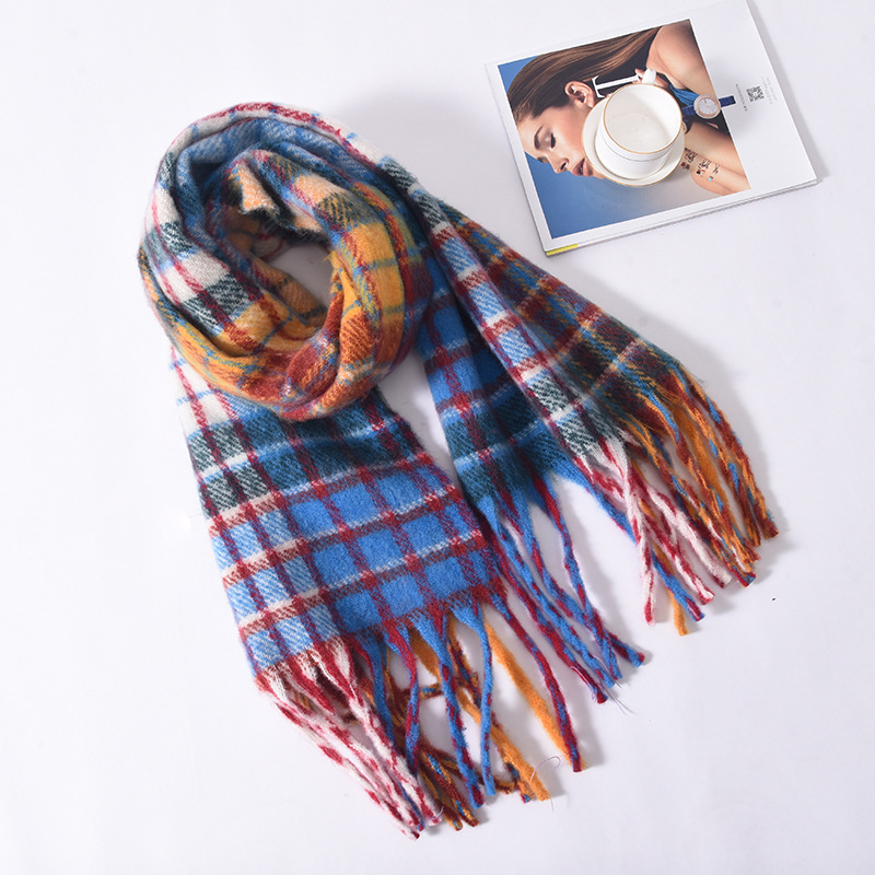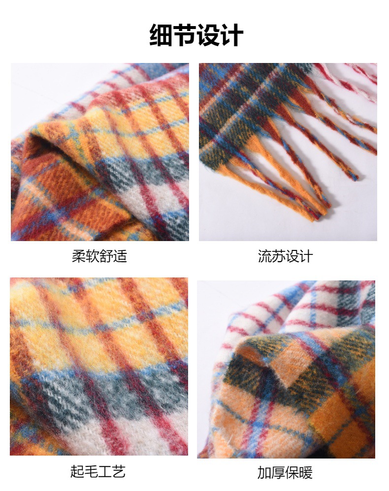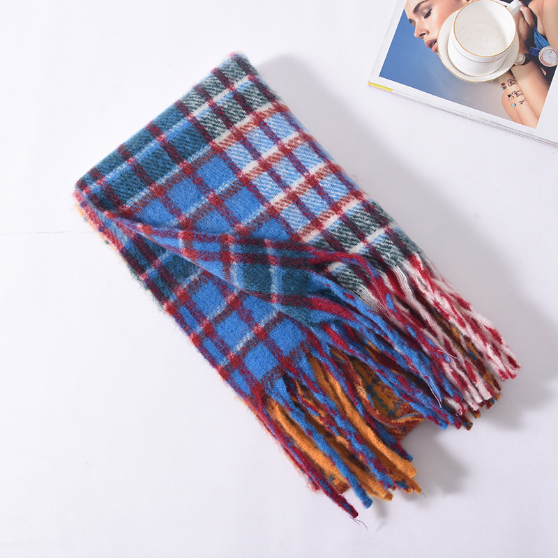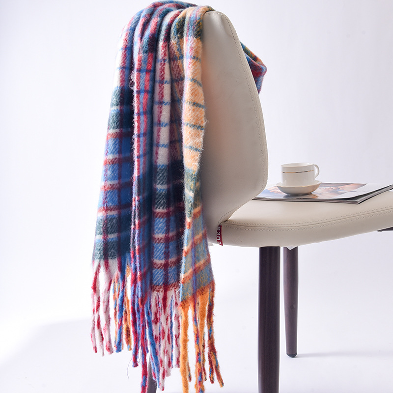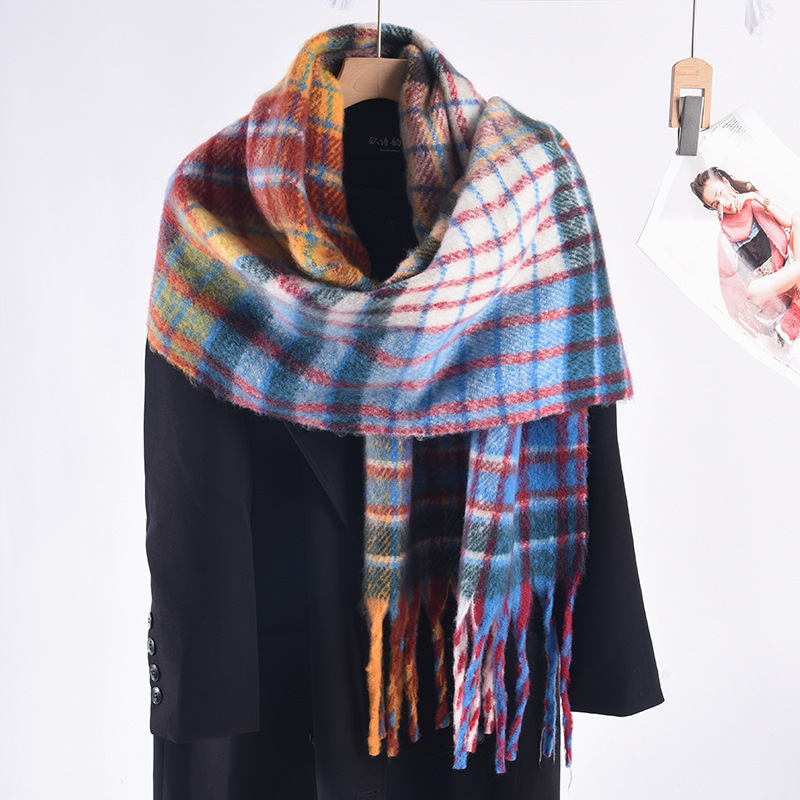 新款秋冬彩虹格子围巾女冬季高级感马海毛流苏披肩围脖仿羊绒围巾