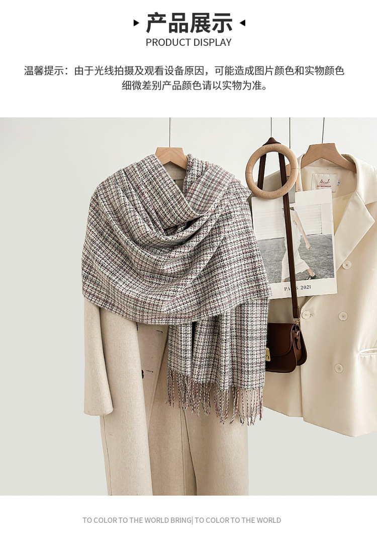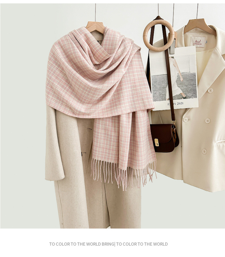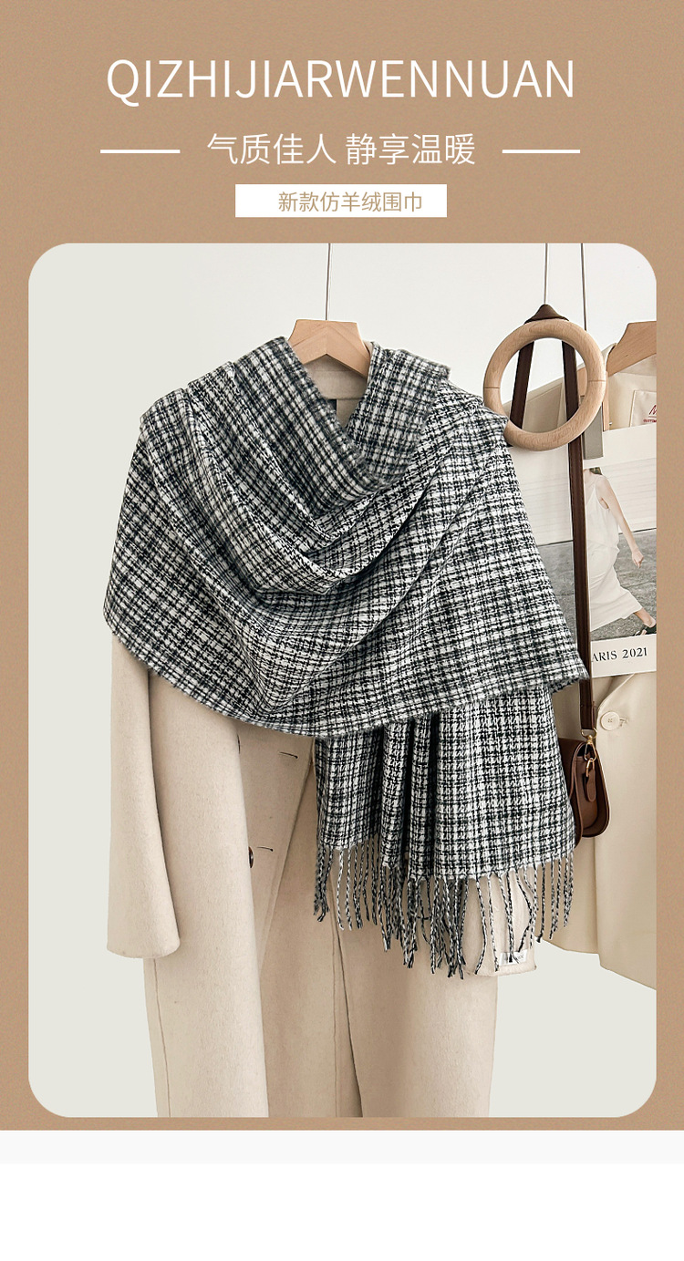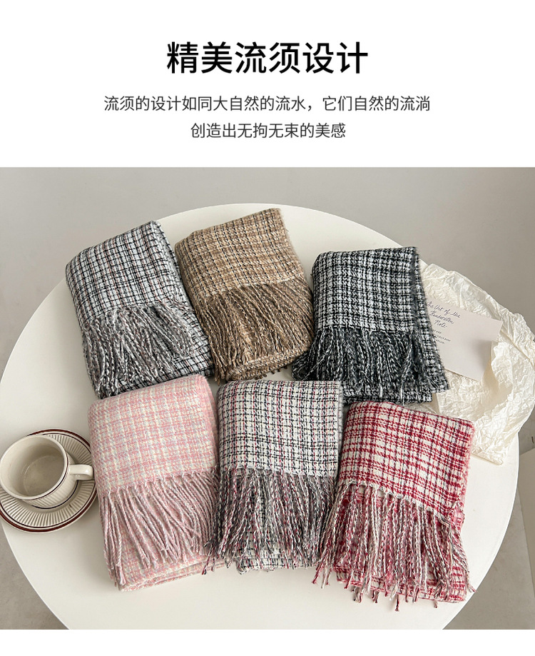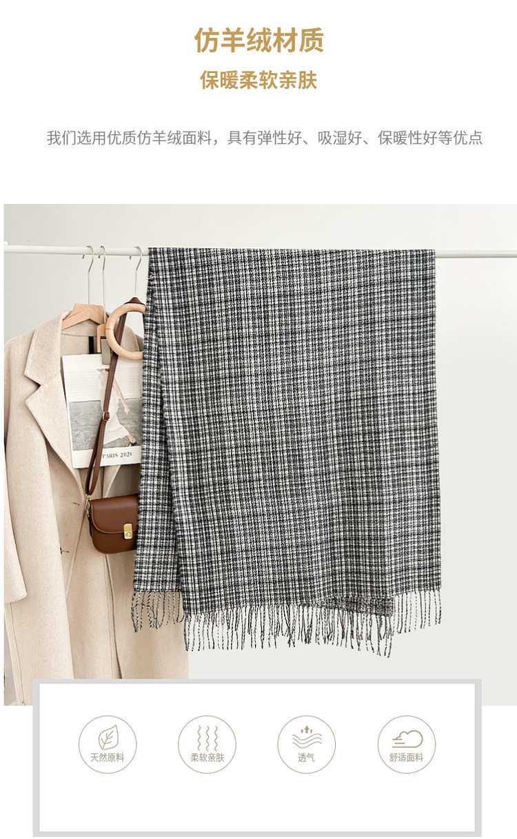 仿羊绒格子围巾女秋冬新款学生百搭英伦风复古韩版情侣款两用围脖