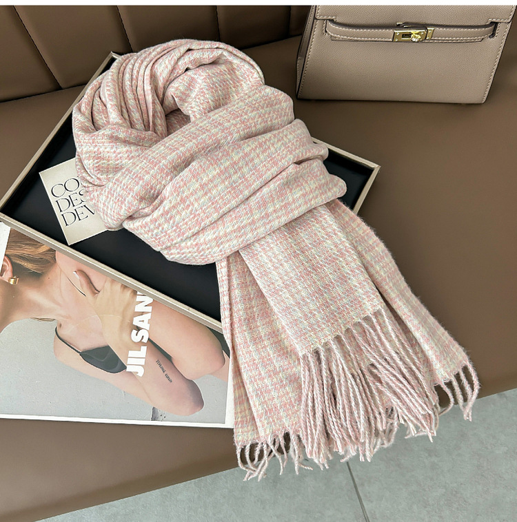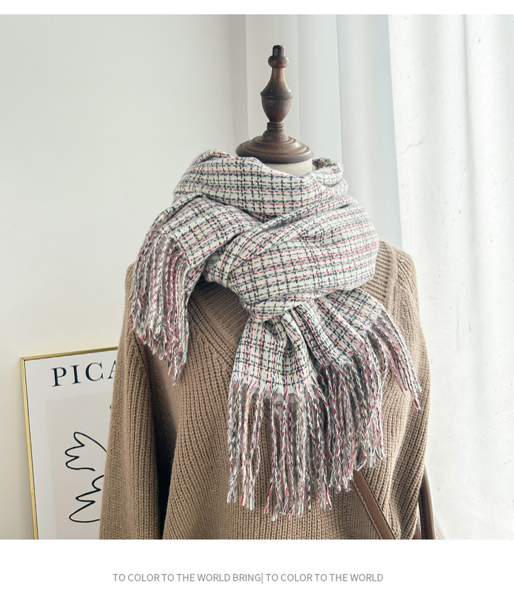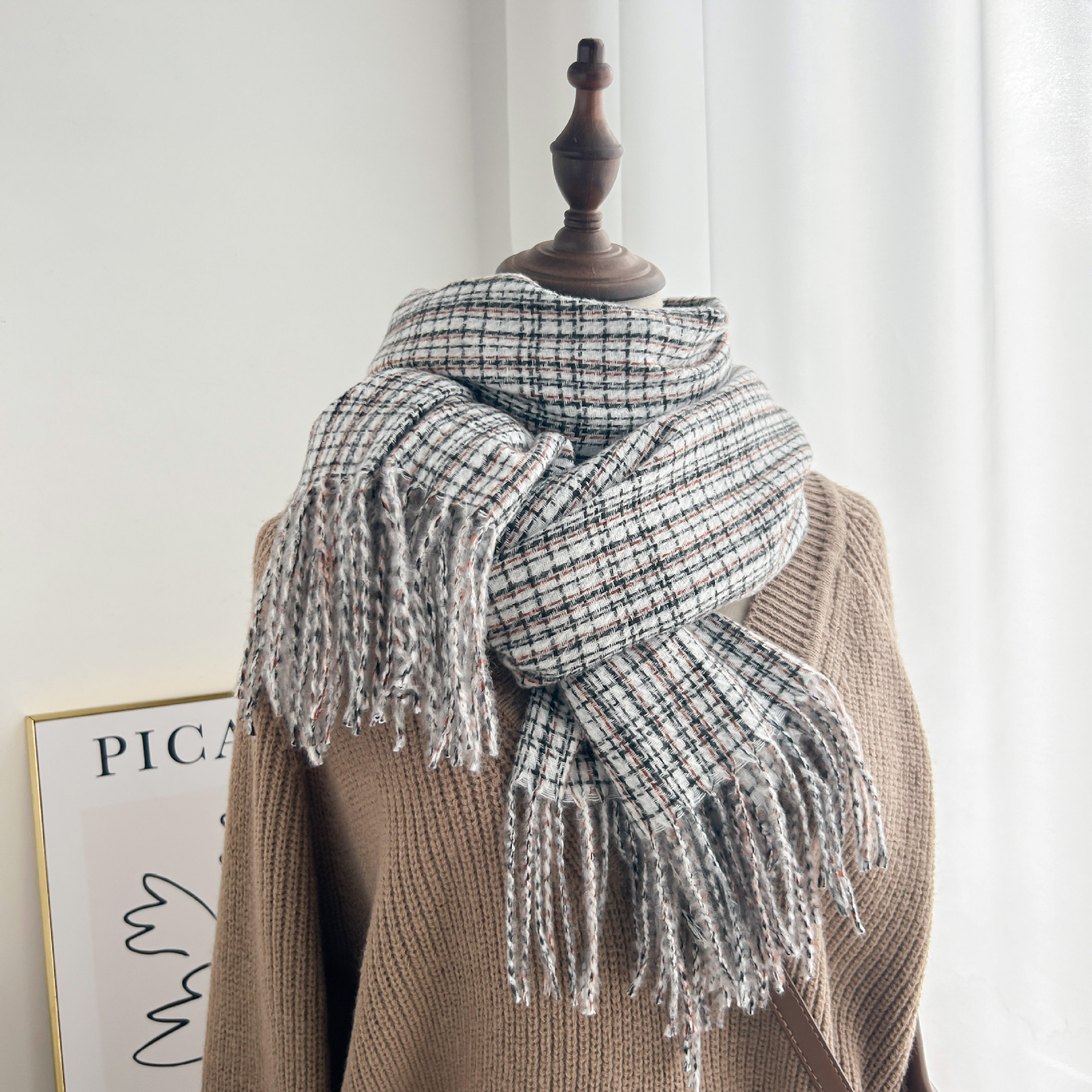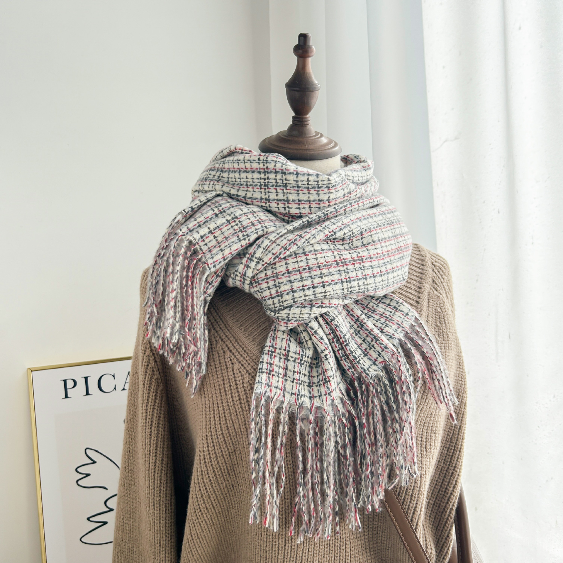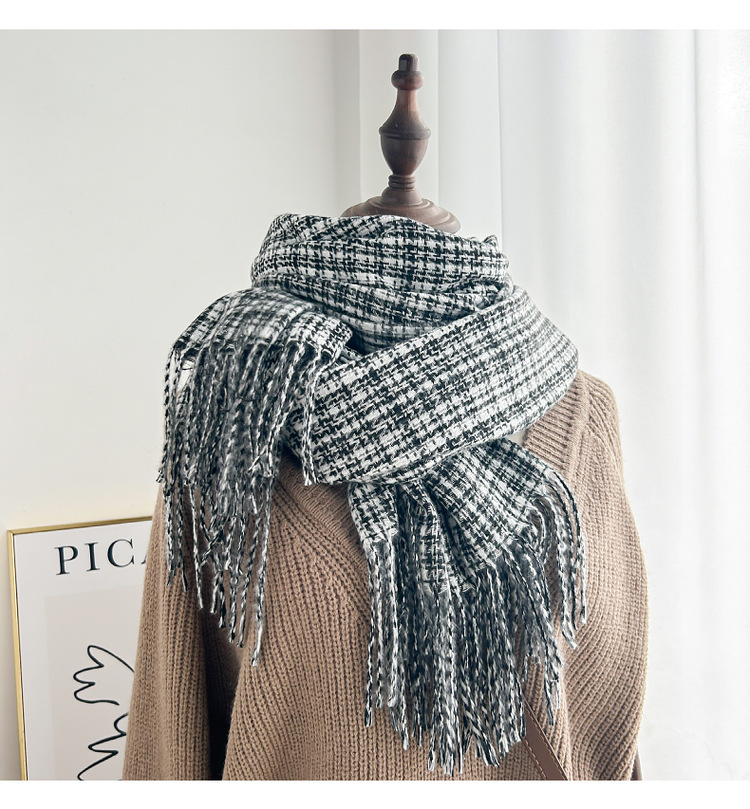 仿羊绒格子围巾女秋冬新款学生百搭英伦风复古韩版情侣款两用围脖