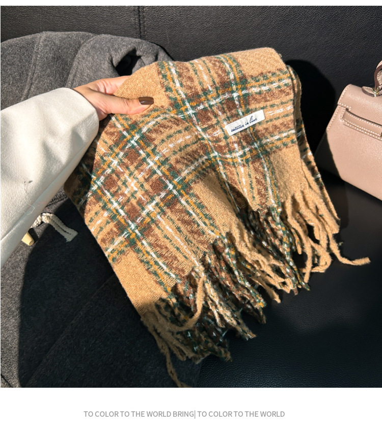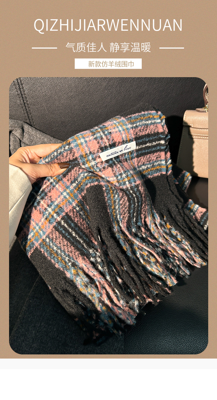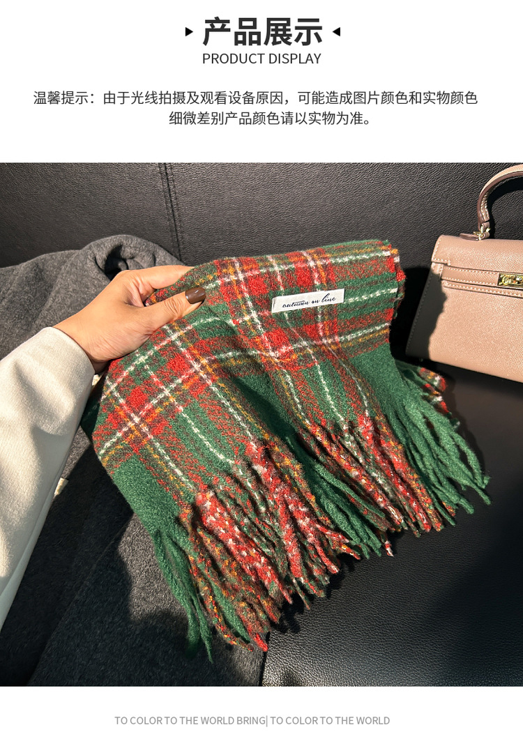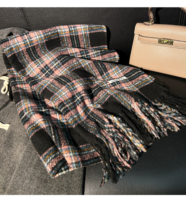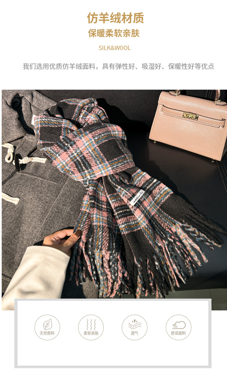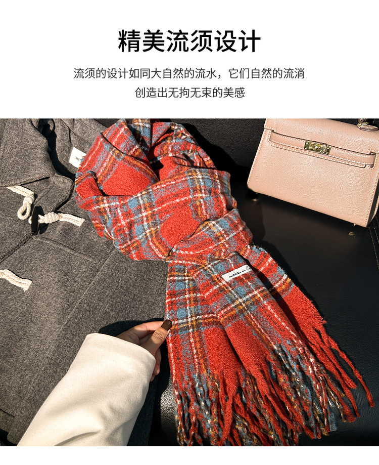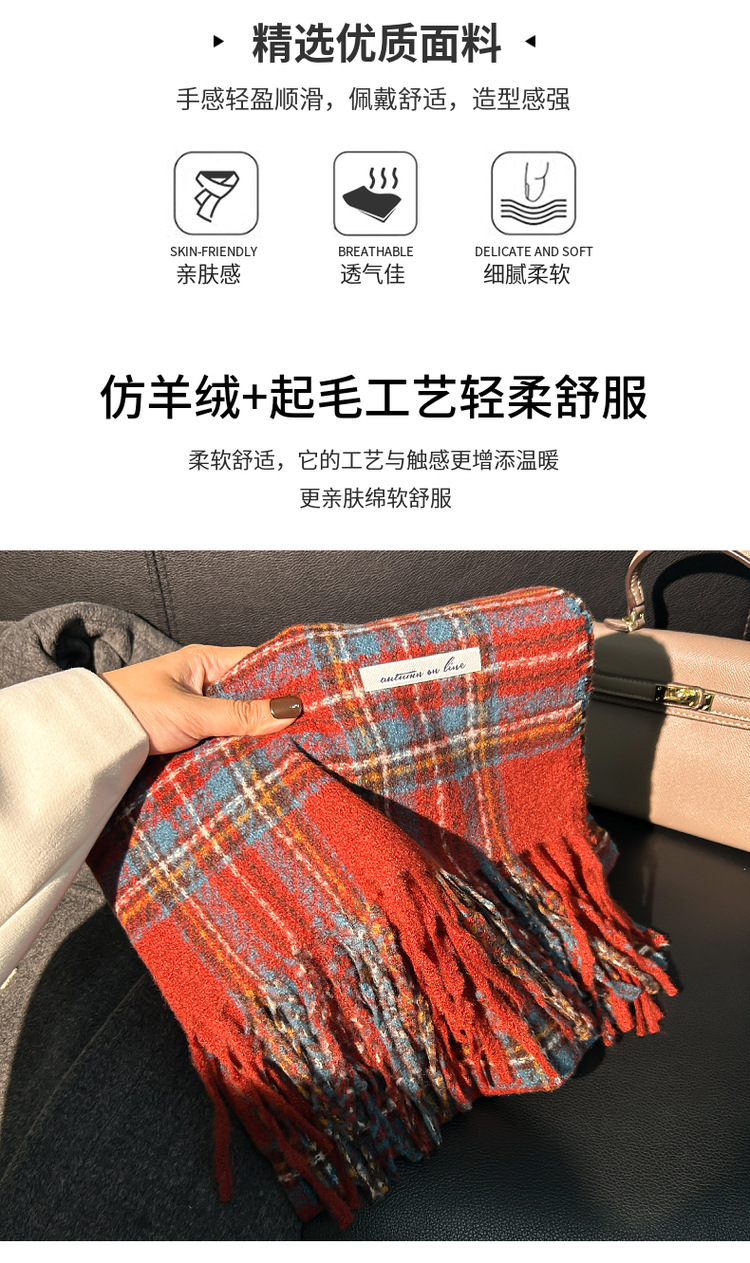 围巾冬季女高级感2024新款格子韩版情侣披肩红色防寒百搭加厚围脖